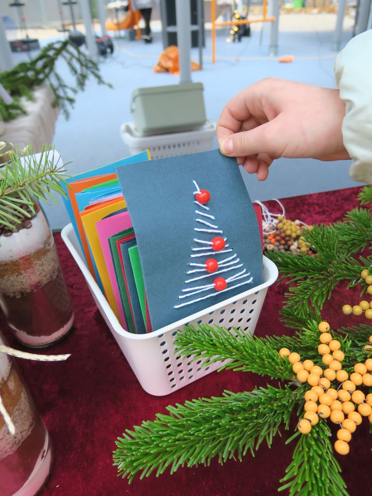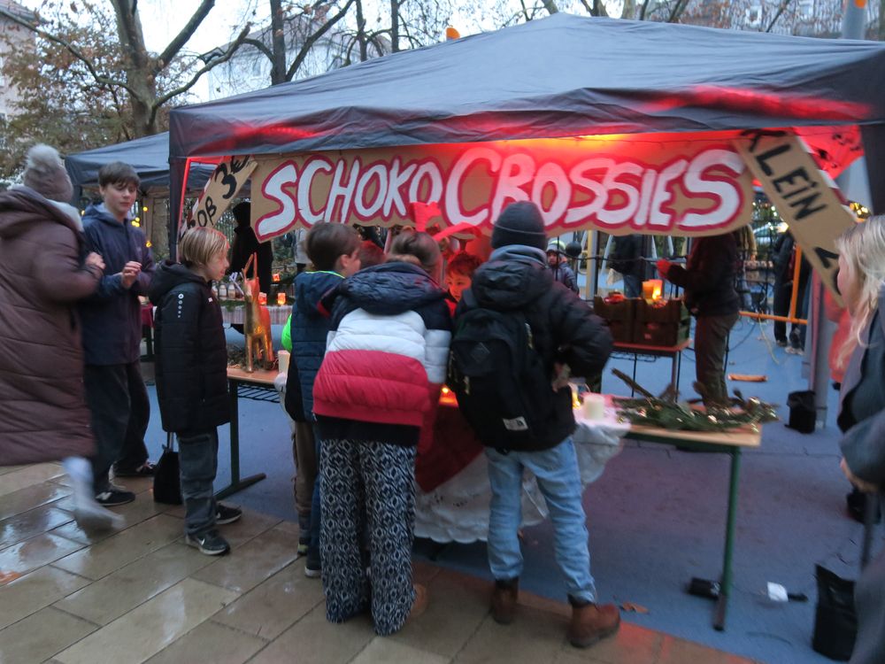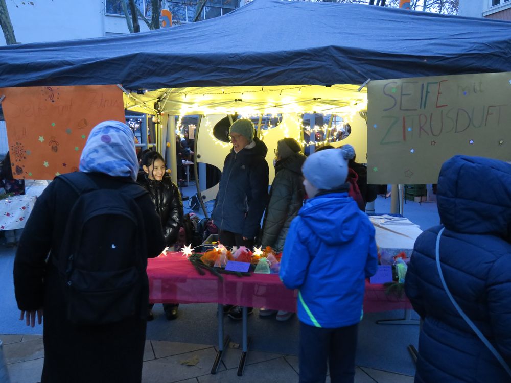 Auf dem Schulhof verkauften die Klassen an den Ständen allerlei Selbstgemachtes, in Form von Gebasteltem oder selbst hergestelltes Naschwerk. Ebenso konnte man auch sein Glück beim Drehen des Glücksrads probieren oder sich an einem der Spielestände vergnügen. Die Musical-AG bot auch in ihren Aufführungen einen ersten Einblick in ihr Winter-Musical.
