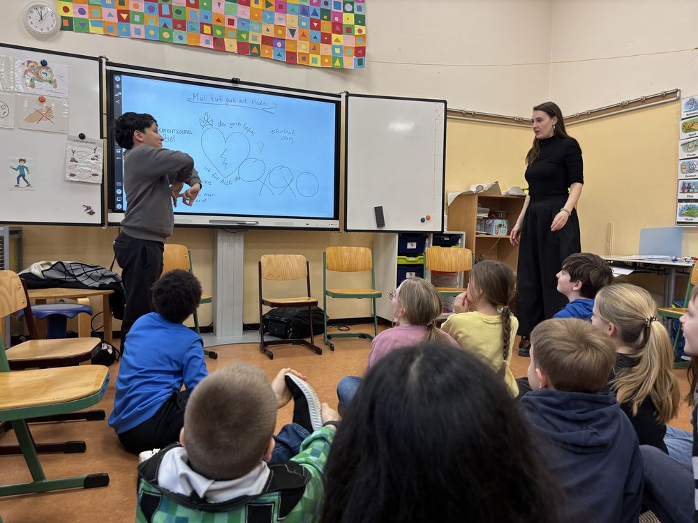Im Januar 2026 fand wieder das Gewaltpräventionsprojekt "MUT TUT GUT" in allen Klassen statt. Für uns als Schwerpunktschule ist "MUT TUT GUT" ein wahrer Glücksgriff, denn es ist ein zu hundert Prozent inklusives Projekt, das in jeder Hinsicht ganz genau zu unserem Schulprofil passt. Die Lehrerinnen und Lehrer begleiten durchgehend die Trainingseinheiten und nehmen viele Elemente daraus in ihren Unterrichts- und Schulalltag auf, so dass das Ganze eine große Wirksamkeit und Nachhaltigkeit erfährt.