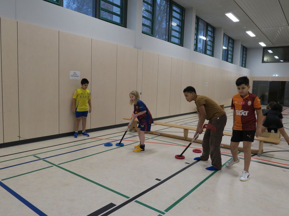 Am Montag, den 26. Januar 2026 fand in der Leibnizschule die Winter-Olympiade für alle Klassen statt. Jeder Jahrgang durfte sich in der Turnhalle in den Disziplinen Biathlon, Schlitten fahren, Eisstock schießen, Zielrodeln, Bobfahren und Freestyle-Ski miteinander messen. Vorrangig ging es dabei natürlich um den Spaß miteinander und die Bewegung!