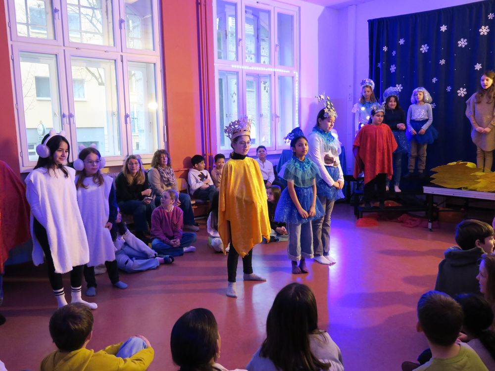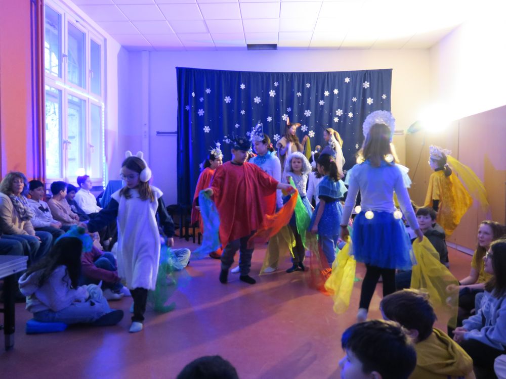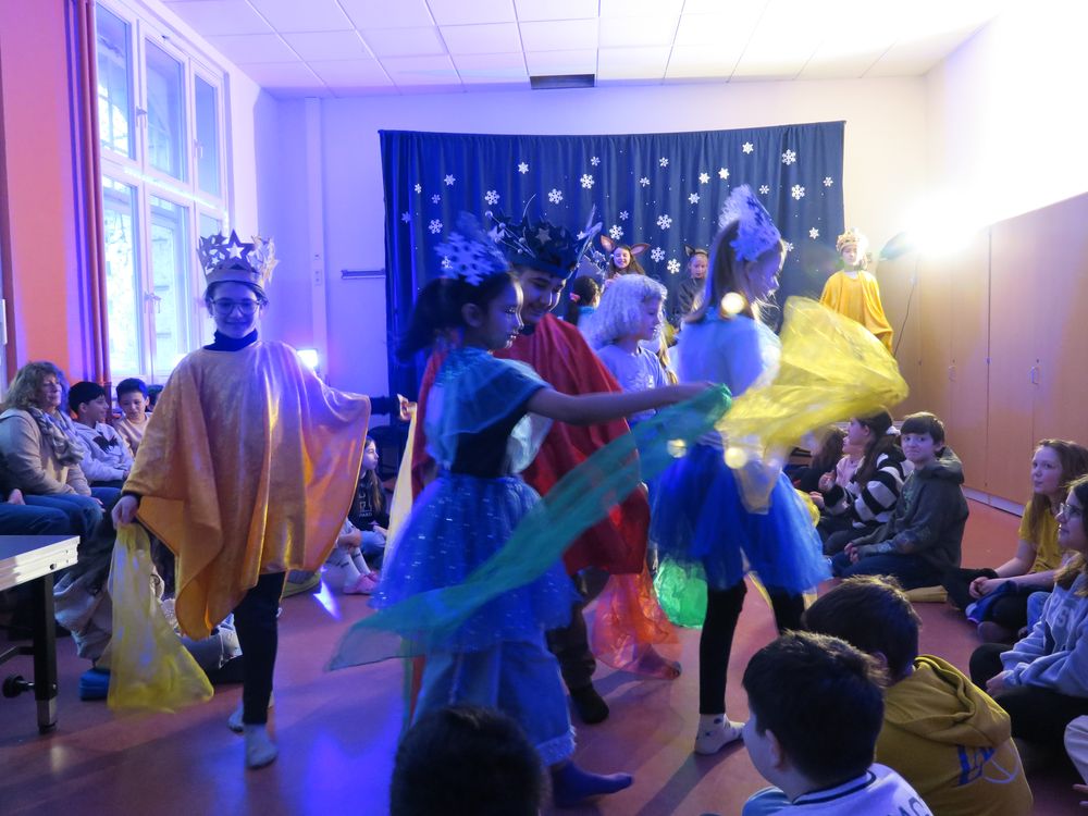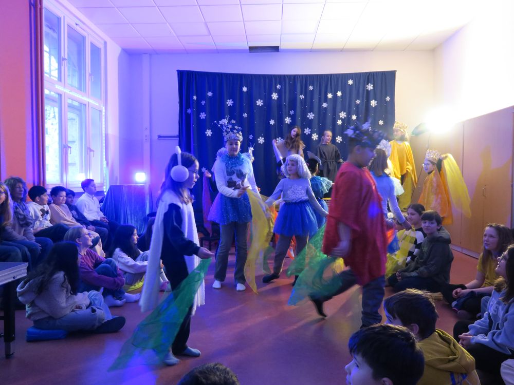 Die Kinder der Musical-AG aus den 4. Klassen führten allen anderen Schülerinnen und Schülern ihr Winter-Musical vor.