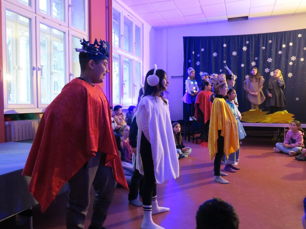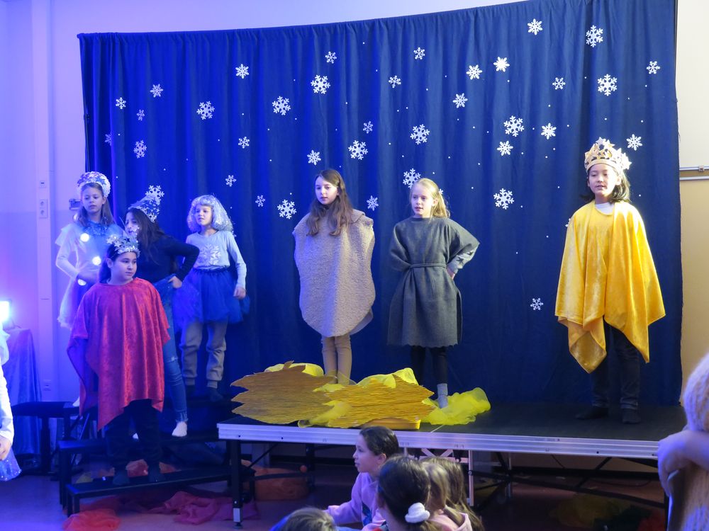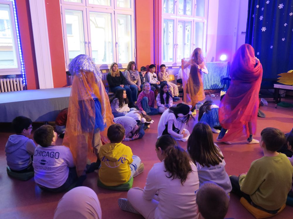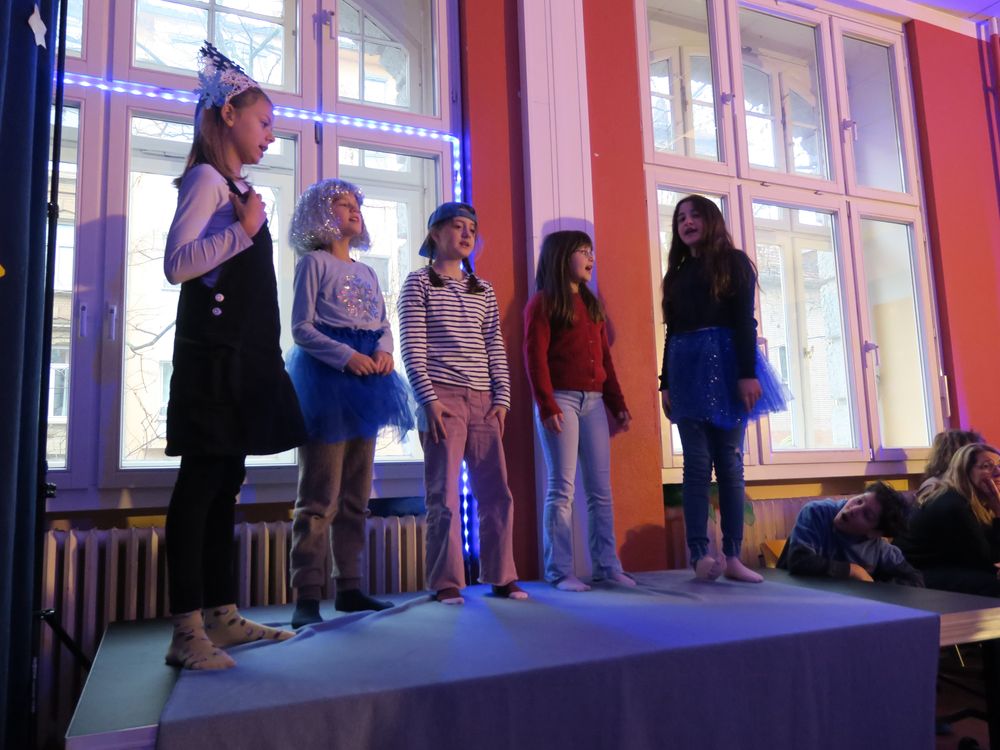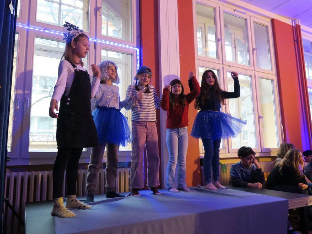 Die Kinder der Musical-AG aus den 4. Klassen führten allen anderen Schülerinnen und Schülern ihr Winter-Musical vor.