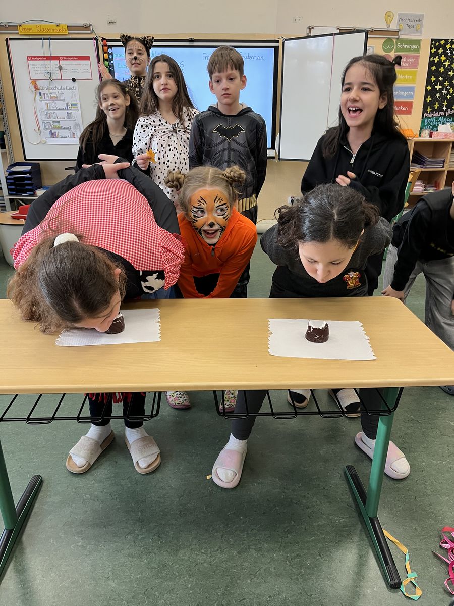 In den Klassen wird zusammen gespielt, gantanzt, gesungen, Polonaisen veranstaltet und vieles mehr! Auch das Essen darf natürlich nicht zu kurz kommen: Heute gab es auch mal was Ungesundes zum Frühstück!