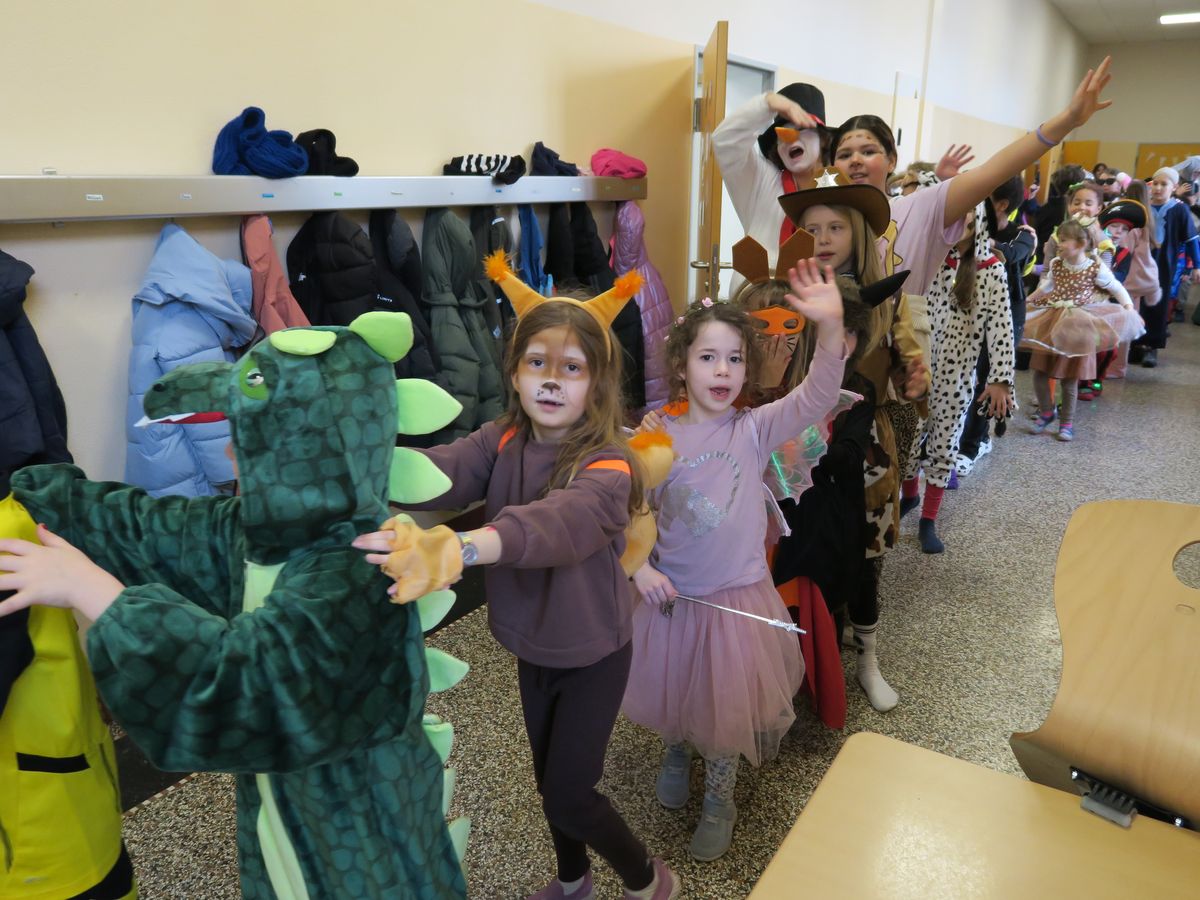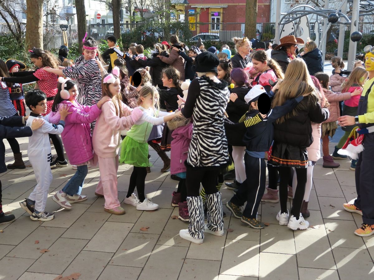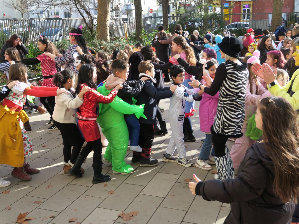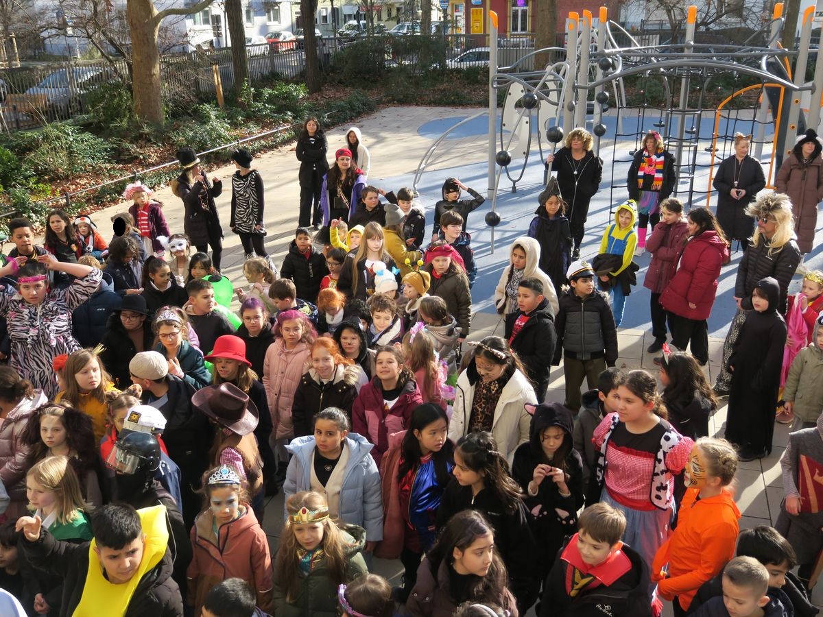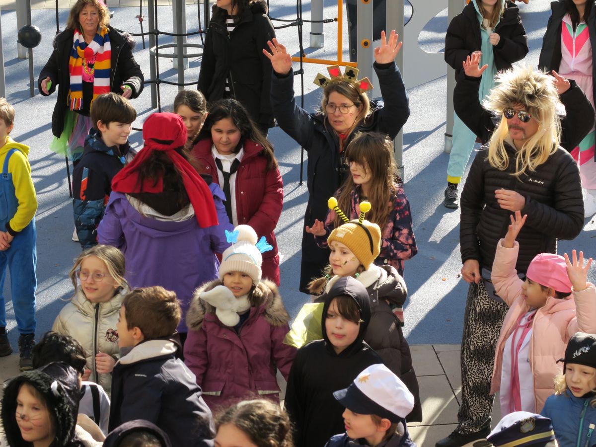 Außerdem haben wir noch einen kleinen Umzug rund um die Schule gemacht und anschließend gab es Disco für alle auf dem Schulhof! HELAU!