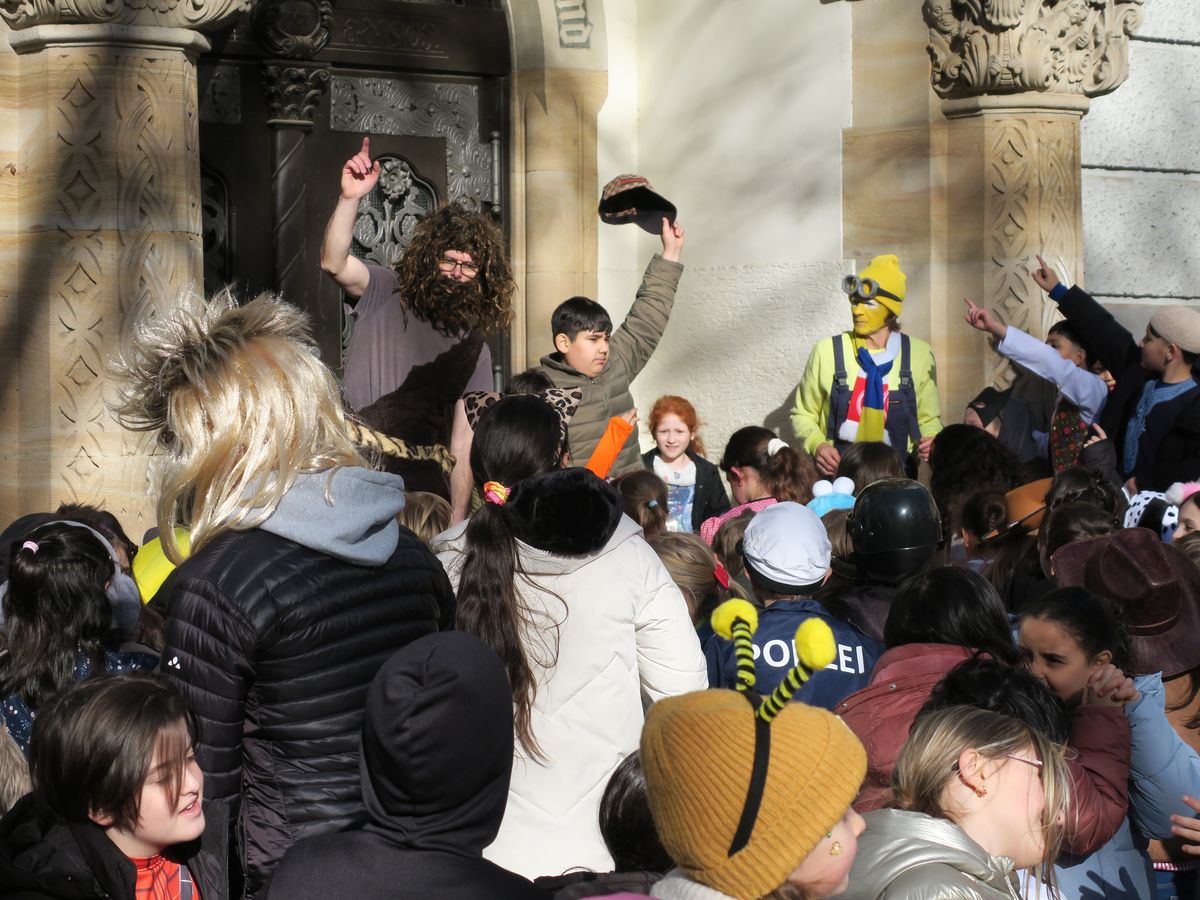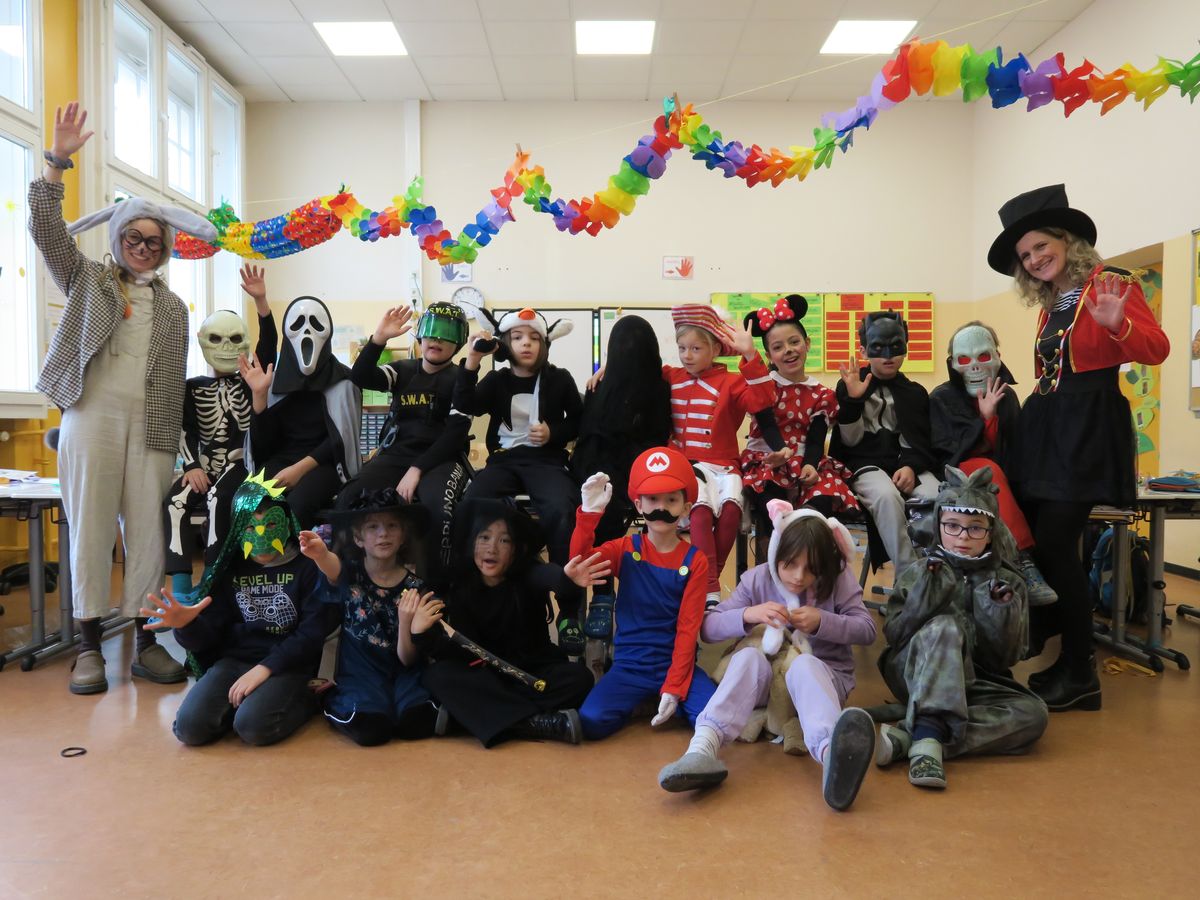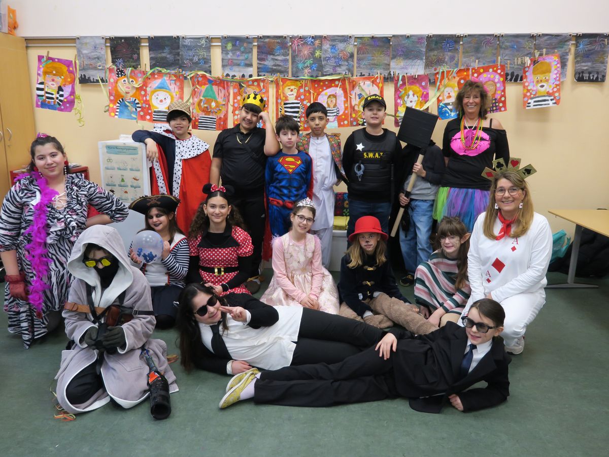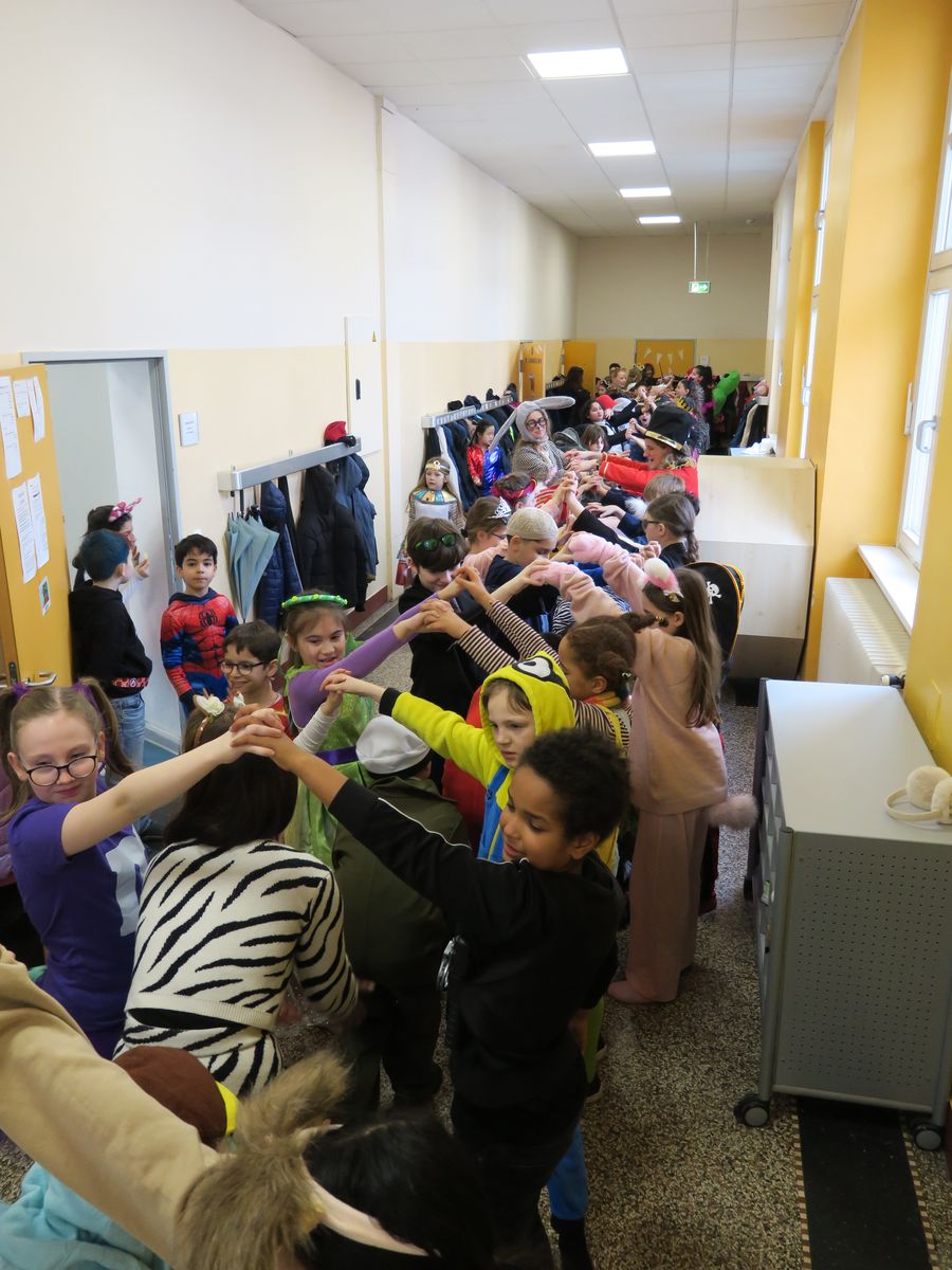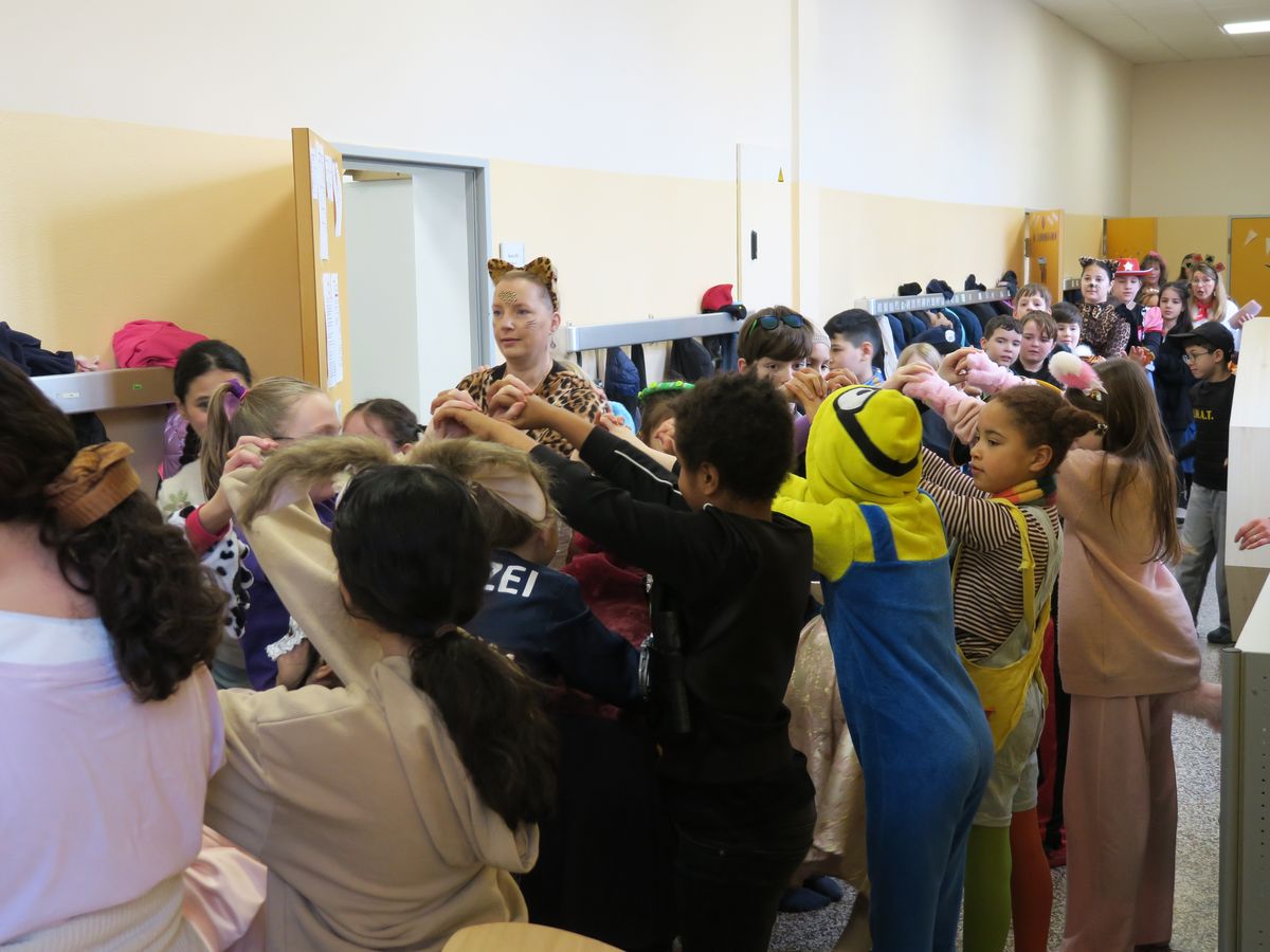 Außerdem haben wir noch einen kleinen Umzug rund um die Schule gemacht und anschließend gab es Disco für alle auf dem Schulhof! HELAU!