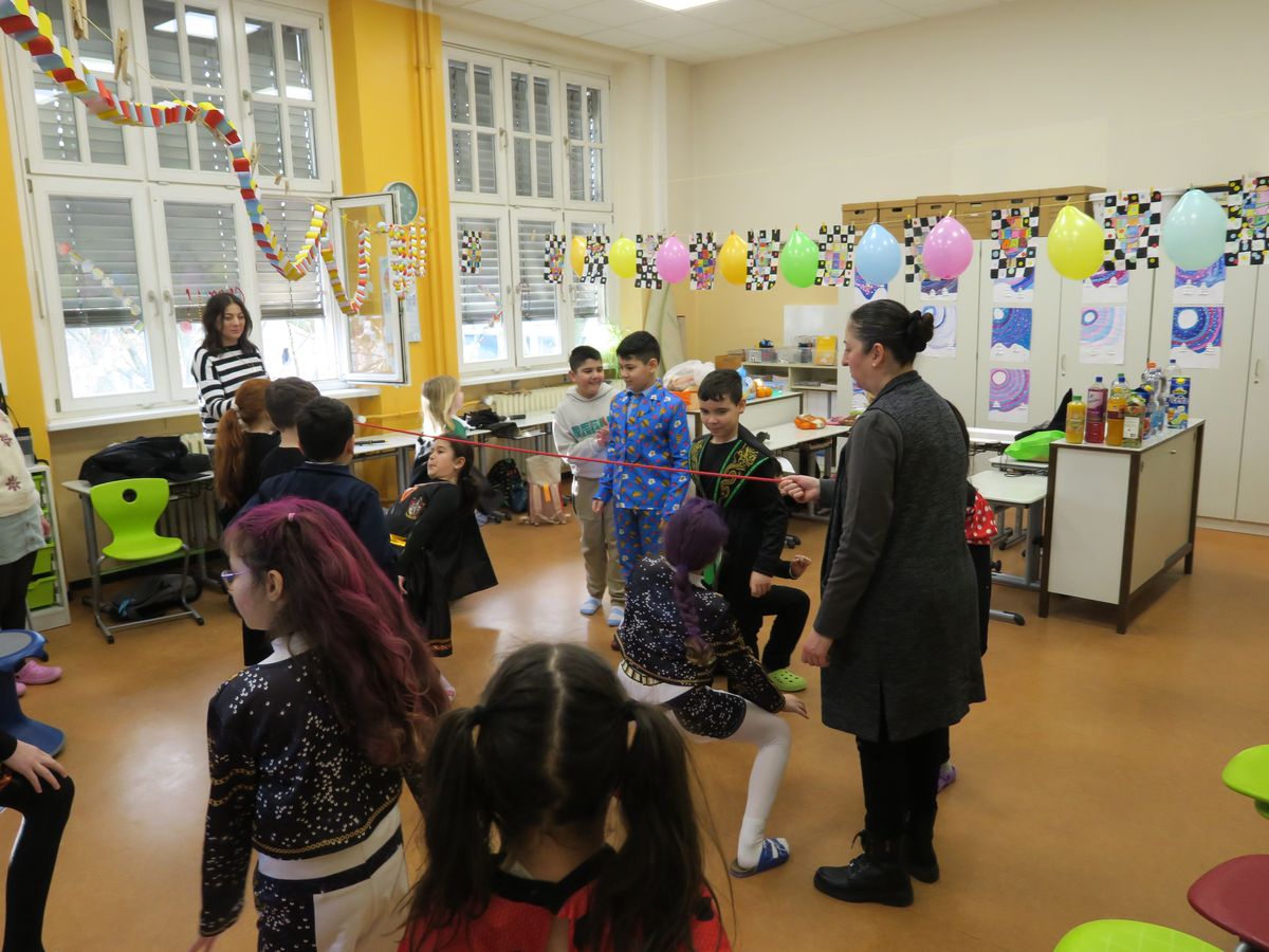 Heute wird auf den Tischen getanzt, denn es ist Fastnacht in der Leibnizschule!