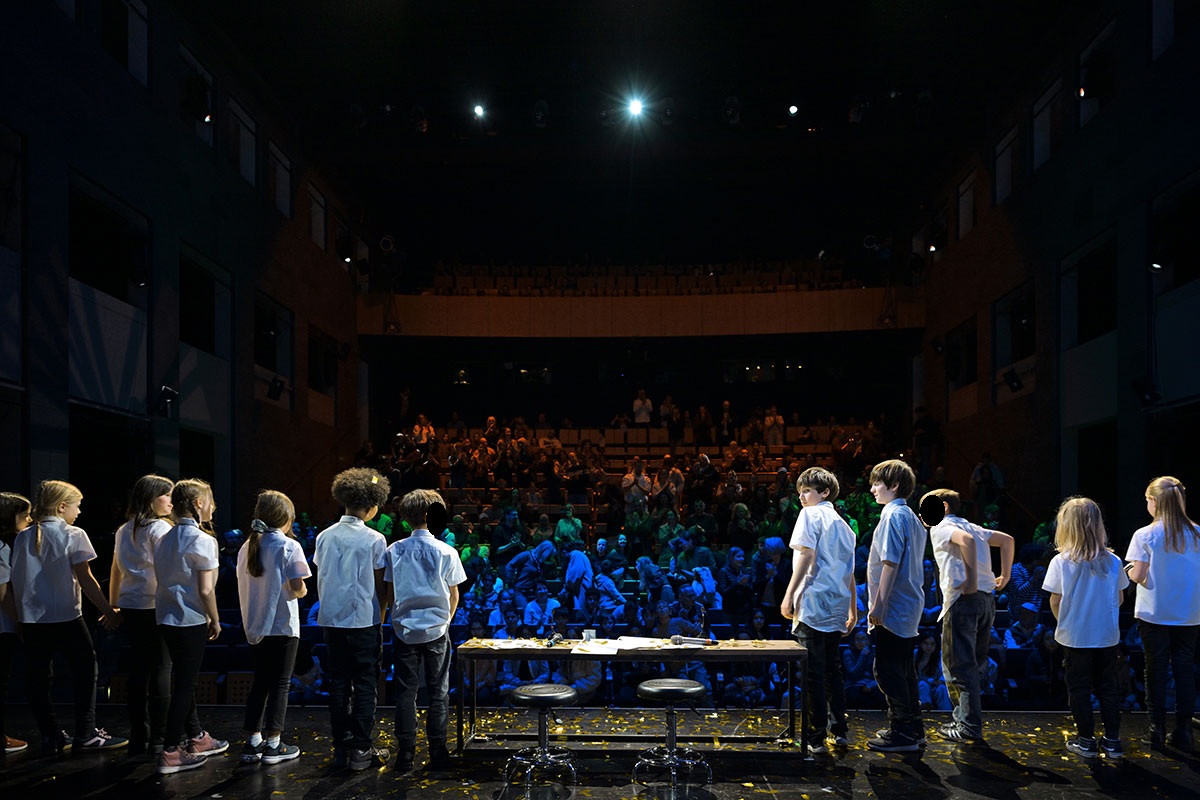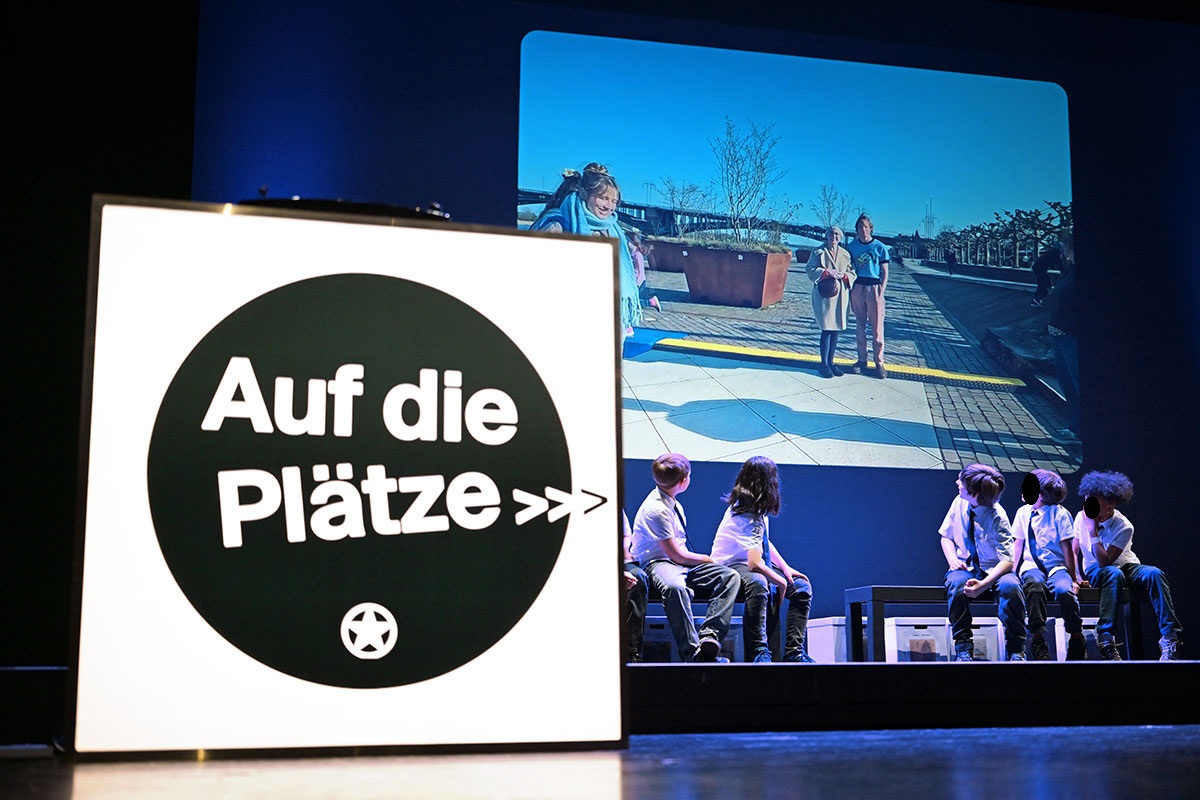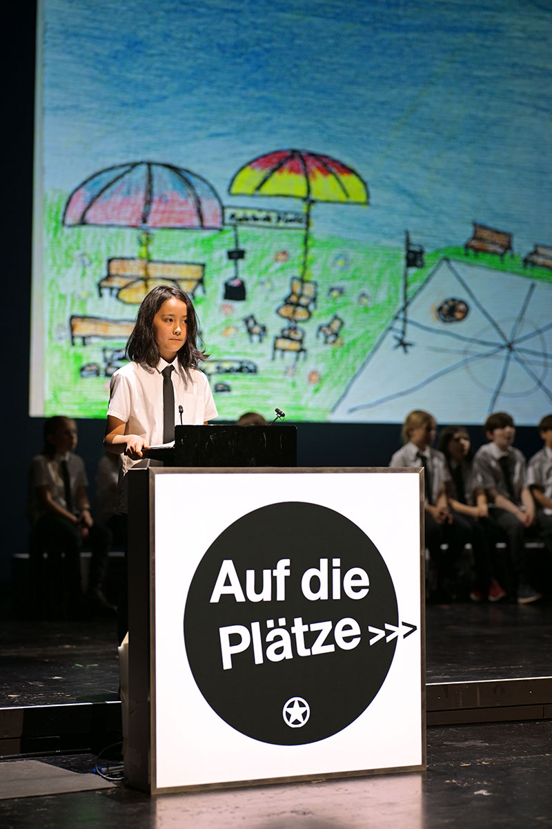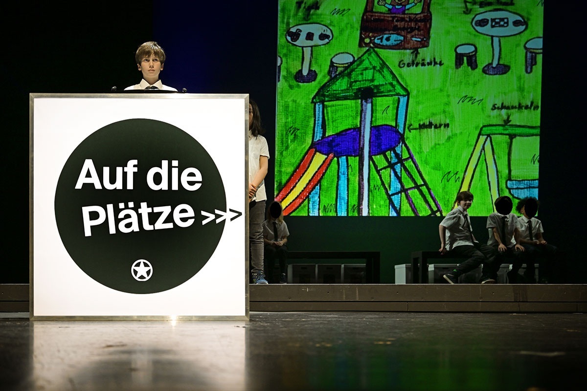 Am 22. März, dem Tag der rheinland-pfälzischen Landtagswahl, präsentierten die Kinder im Kleinen Haus des Staatstheaters ihre Entwürfe, erläuterten ihre Ideen und Wünsche und interviewten Expert*innen. Anschließend luden sie alle anwesenden Kinder ein, in einer großen Abstimmung zu entscheiden, welches Projekt im Stadtraum realisiert werden soll. Und tatsächlich hat der Entwurf eines Kindes aus der Leibnizschule gewonnen!