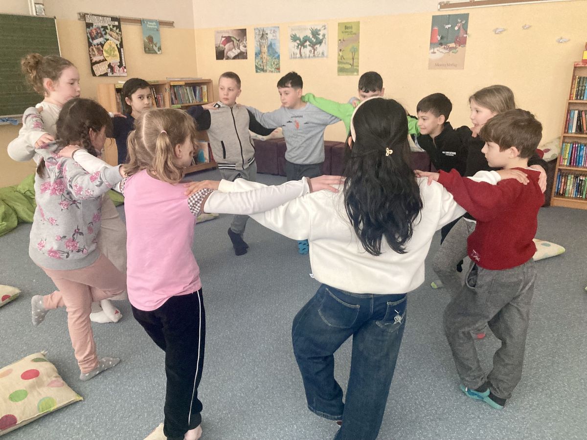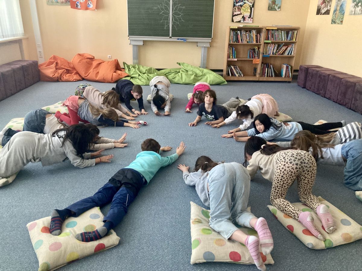 In diesem Schuljahr bietet die BGS folgende AGs an: Kinder-Yoga AG, Gesund und Lecker-AG, Harry-Potter AG und Märchen-AG. Über den Ablauf informiert die BGS-Leitung (Natalija Parata).