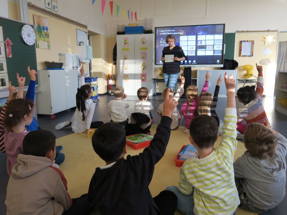 Morgens begrüßen wir uns und klären wir den Ablauf des Unterrichtstages.