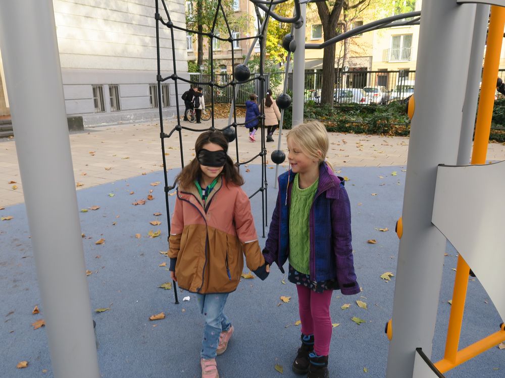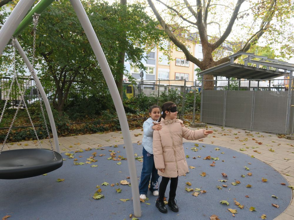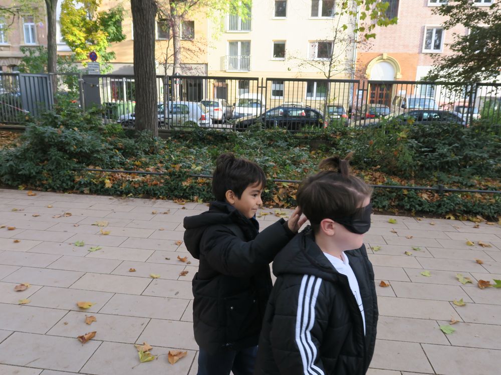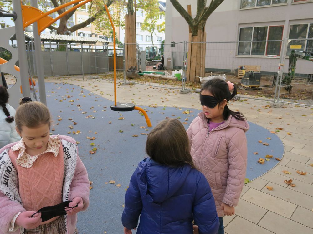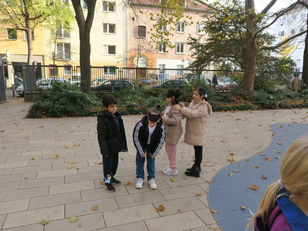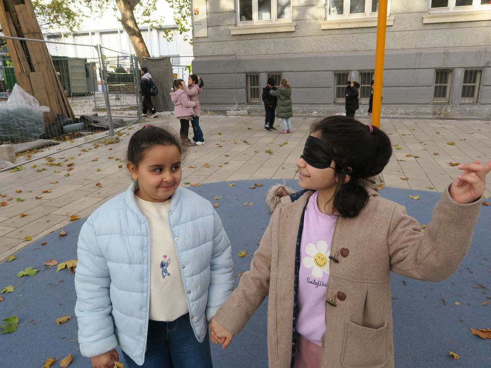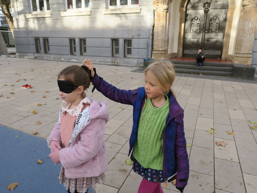 Zum Sachunterrichtsthema "Meine Sinne" haben wir Übungen auf dem Pausenhof durchgeführt. Wir haben den Seh-Sinn ausgeschaltet und mit Hilfe eines "Blindenführers" haben wir uns gegenseitig über den Schulhof geführt.