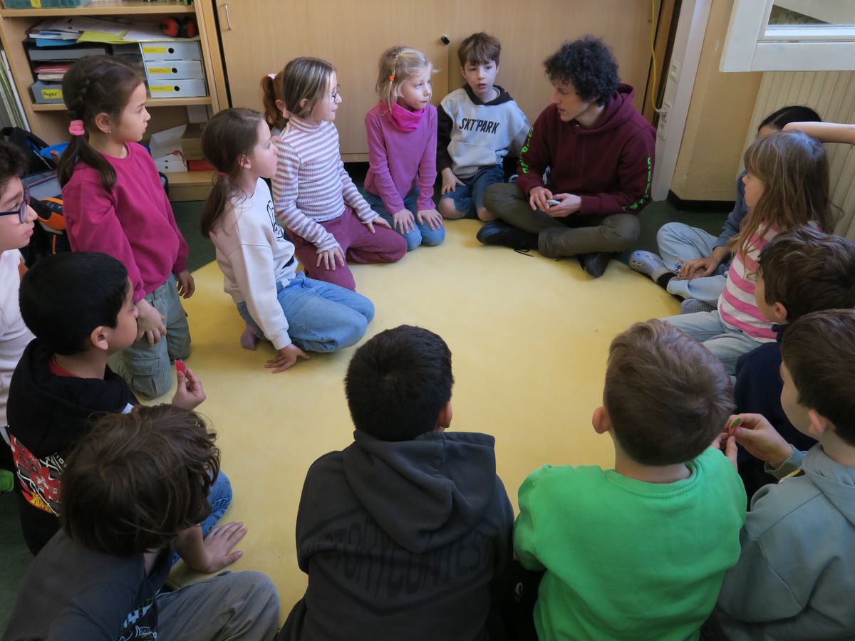 Heute war ein ganz besonderer Tag: Lesehund Juni war zum ersten Mal in der Klasse 2b zu Besuch! Neugierig und freundlich begrüßte sie die Kinder, die sie mit großer Freude willkommen hießen. Gemeinsam lernten sich alle kennen – es wurden viele Fragen gestellt, Geschichten über eigene Haustiere erzählt und natürlich durfte Juni ausgiebig gestreichelt werden. Sogar ein paar kleine Kunststücke hatte sie im Repertoire und sorgte damit für Staunen und Begeisterung.