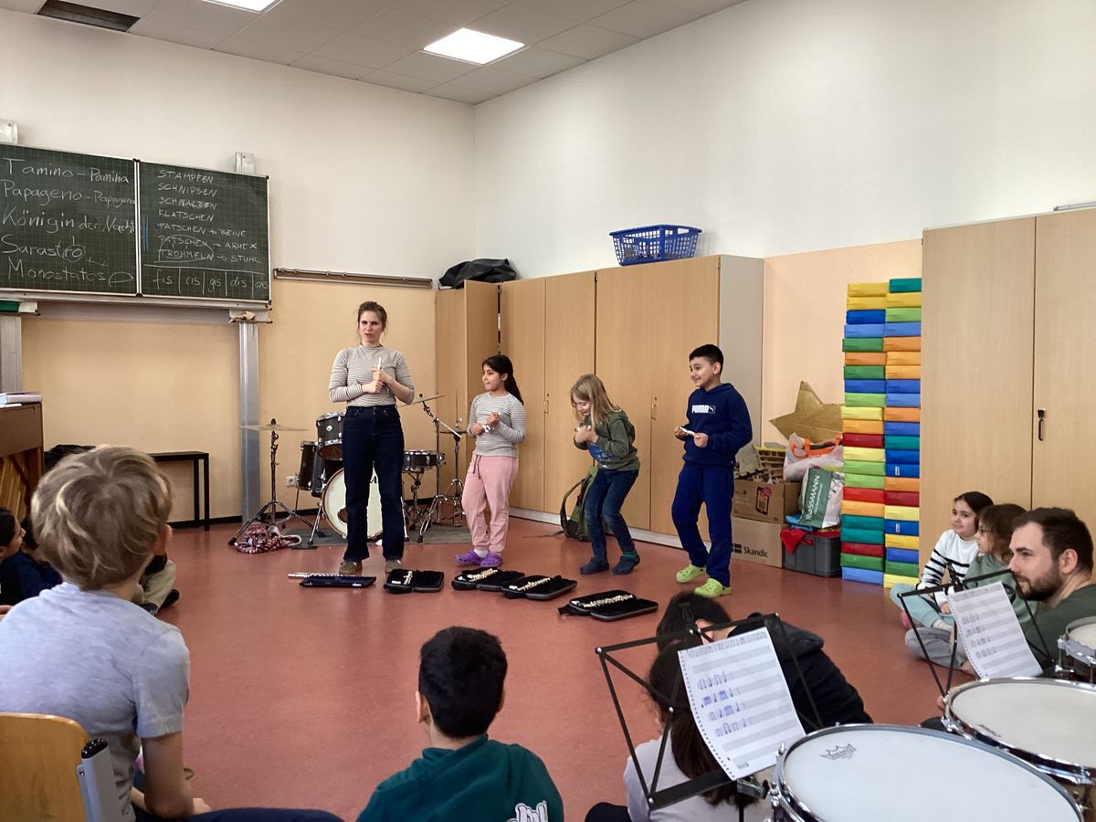 Die Klasse 3a hat sich in der Zwischenpräsentation des INKA gegenseitig ihre Fortschritte beim Musizieren vorgestellt. Dabei waren auch Übungen mit Bodypercussion zum Mitmachen für die jeweils anderen Kinder dabei.