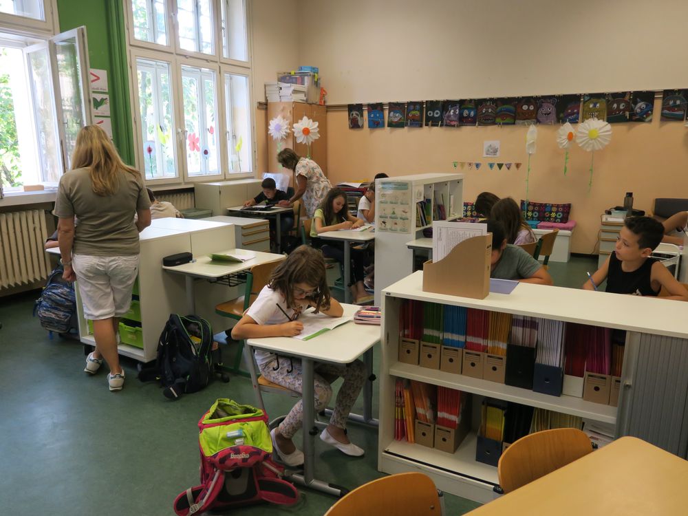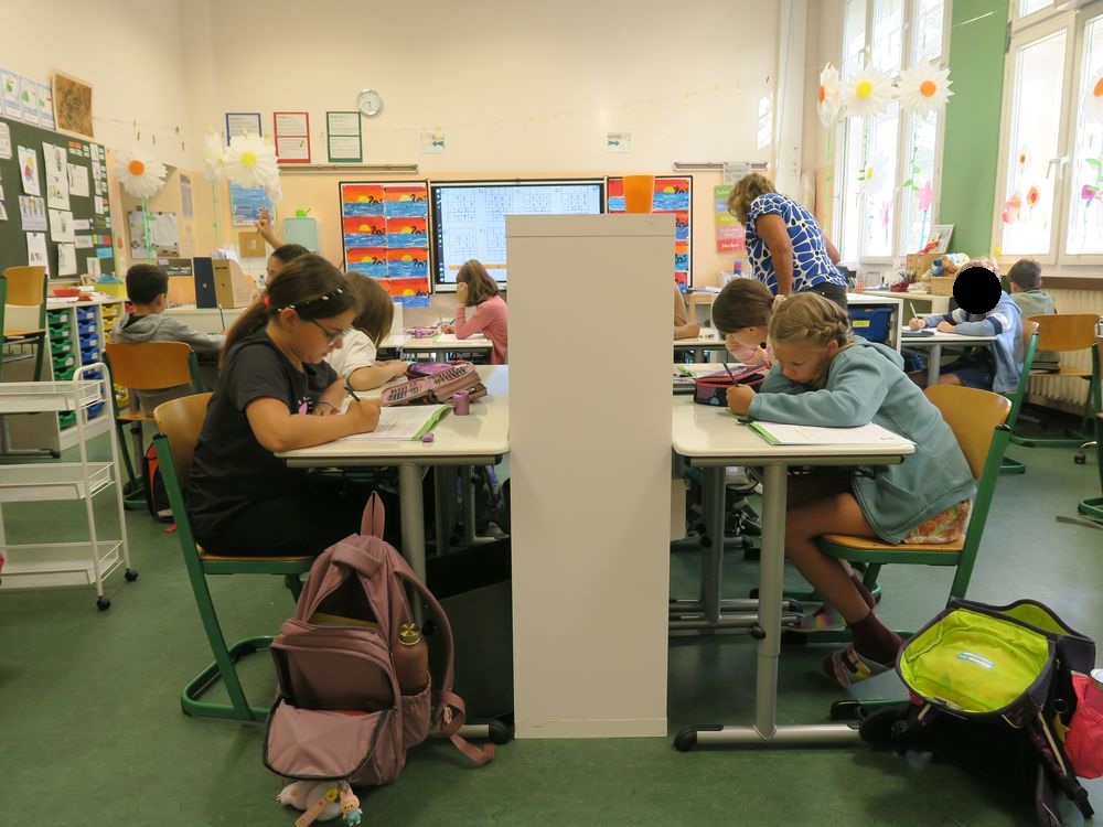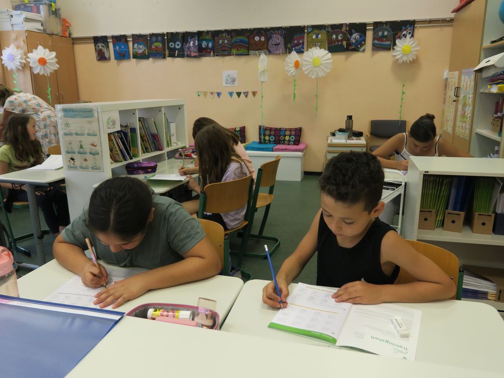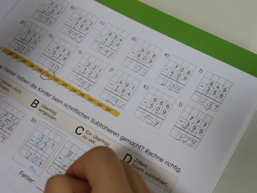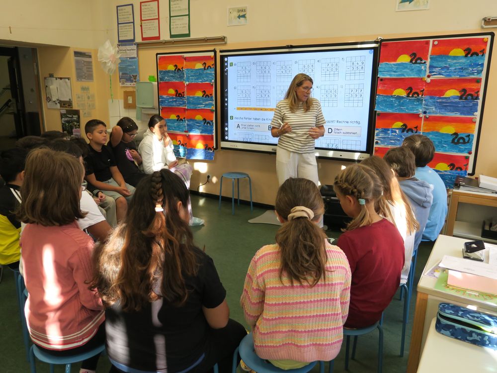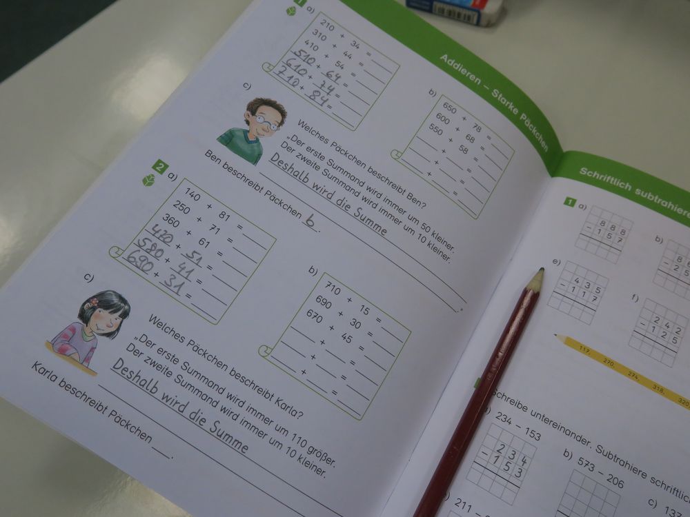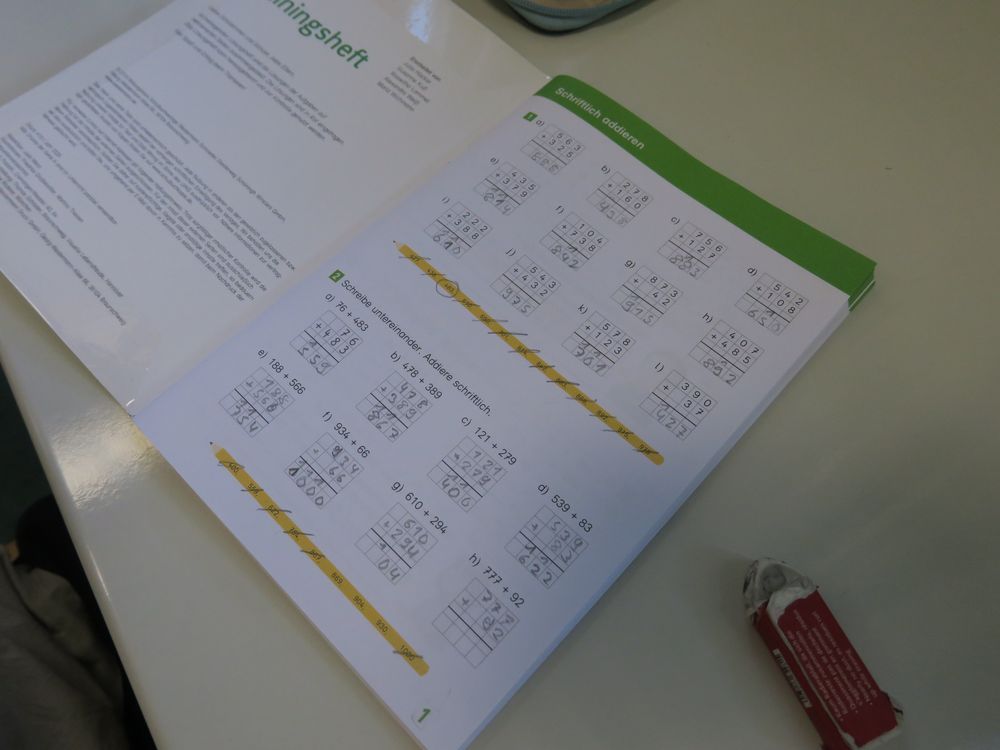 Wir wiederholen im Mathematikunterricht die schriftliche Addition und Subtraktion.