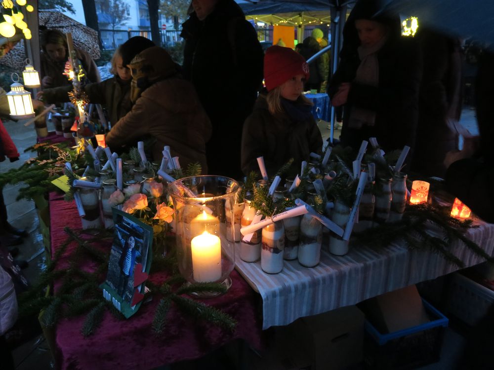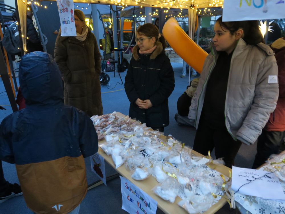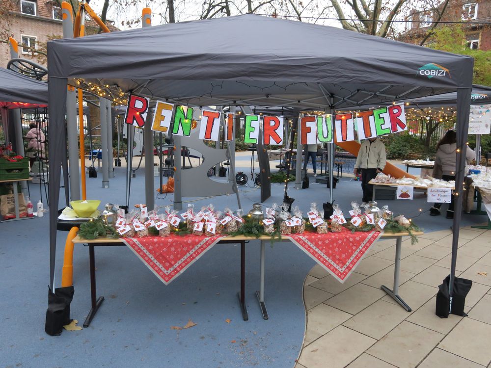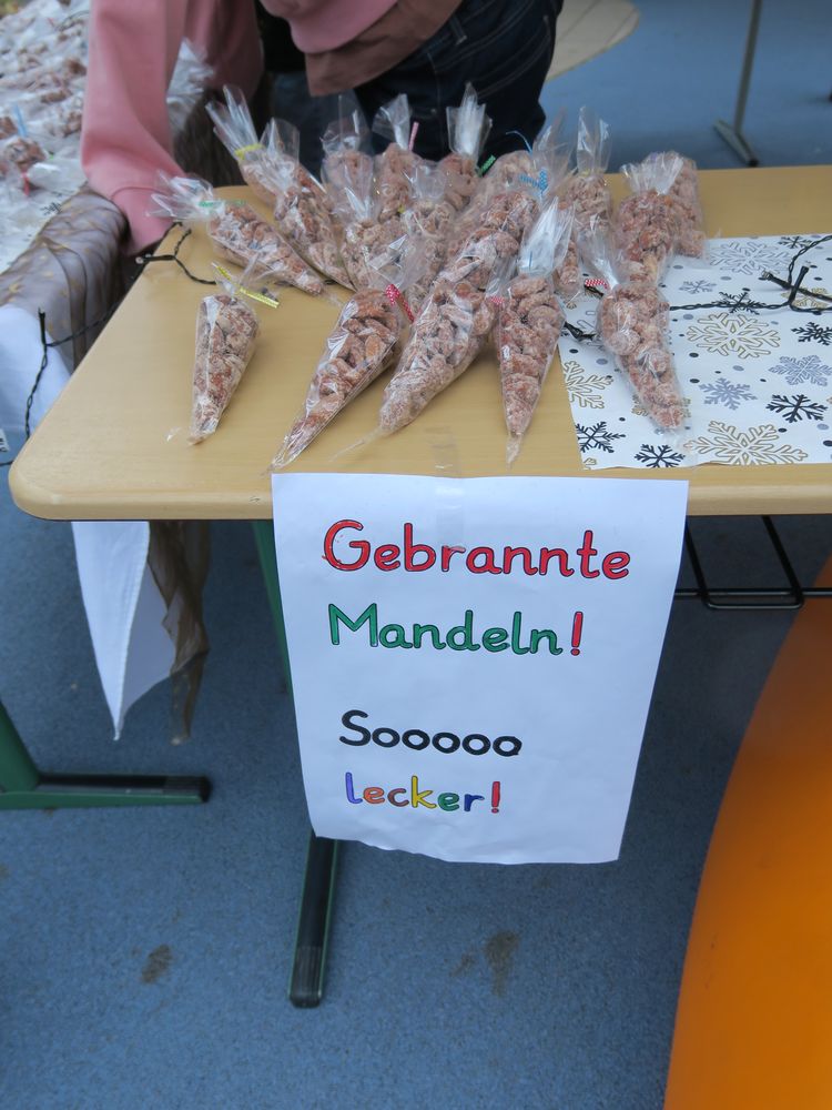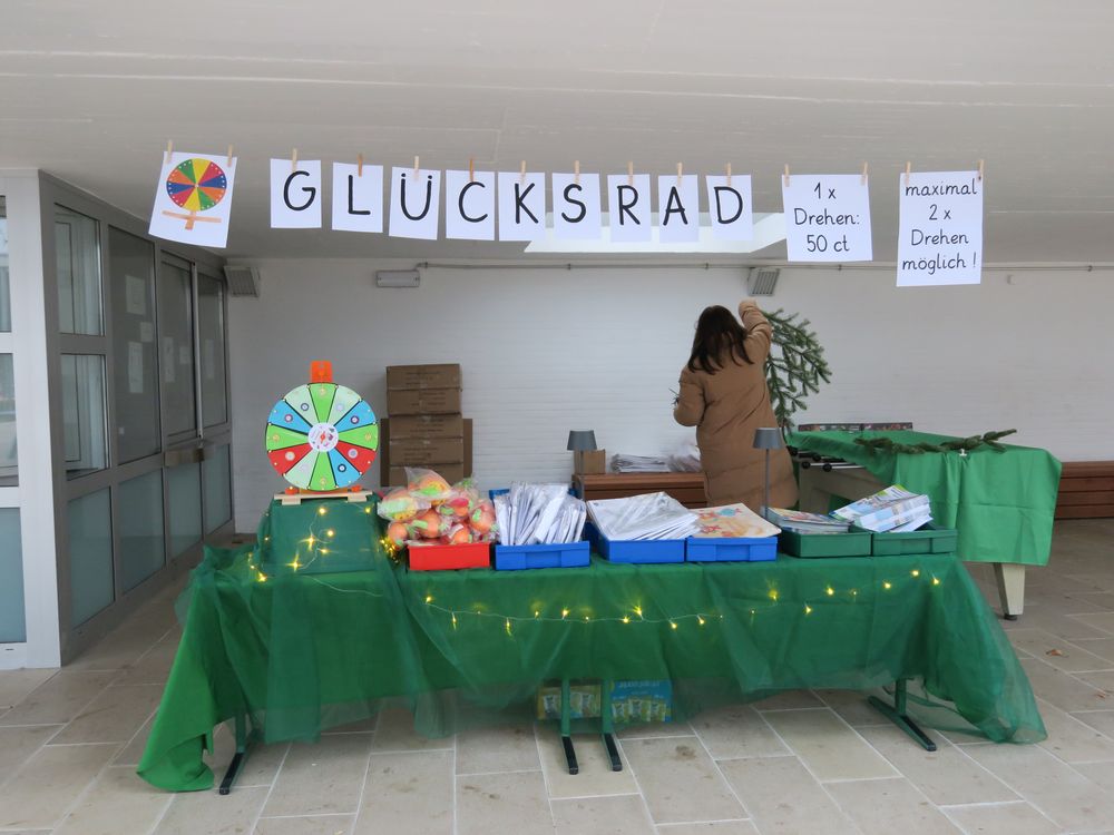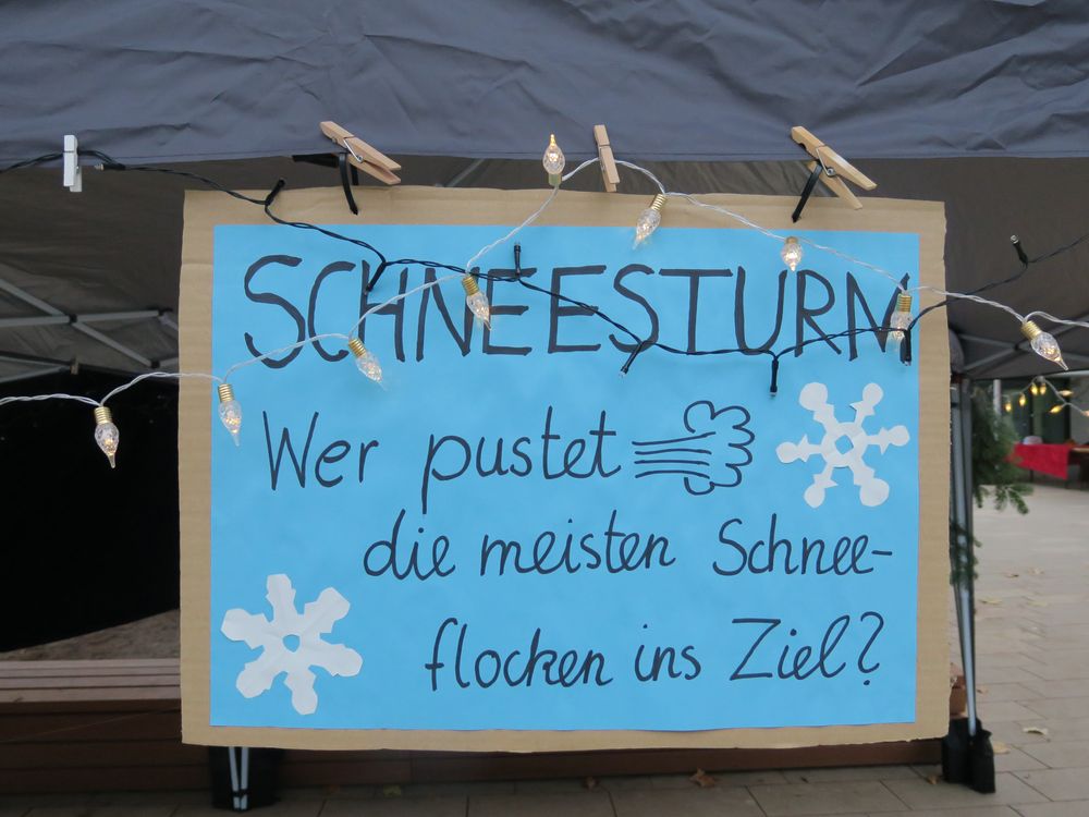 Auf dem Schulhof verkauften die Klassen an den Ständen allerlei Selbstgemachtes, in Form von Gebasteltem oder selbst hergestelltes Naschwerk. Ebenso konnte man auch sein Glück beim Drehen des Glücksrads probieren oder sich an einem der Spielestände vergnügen. Die Musical-AG bot auch in ihren Aufführungen einen ersten Einblick in ihr Winter-Musical.