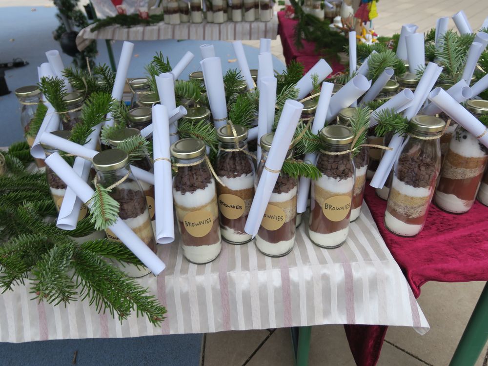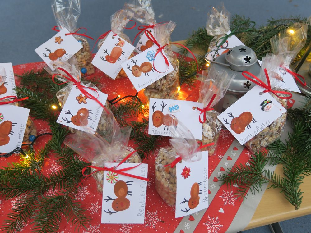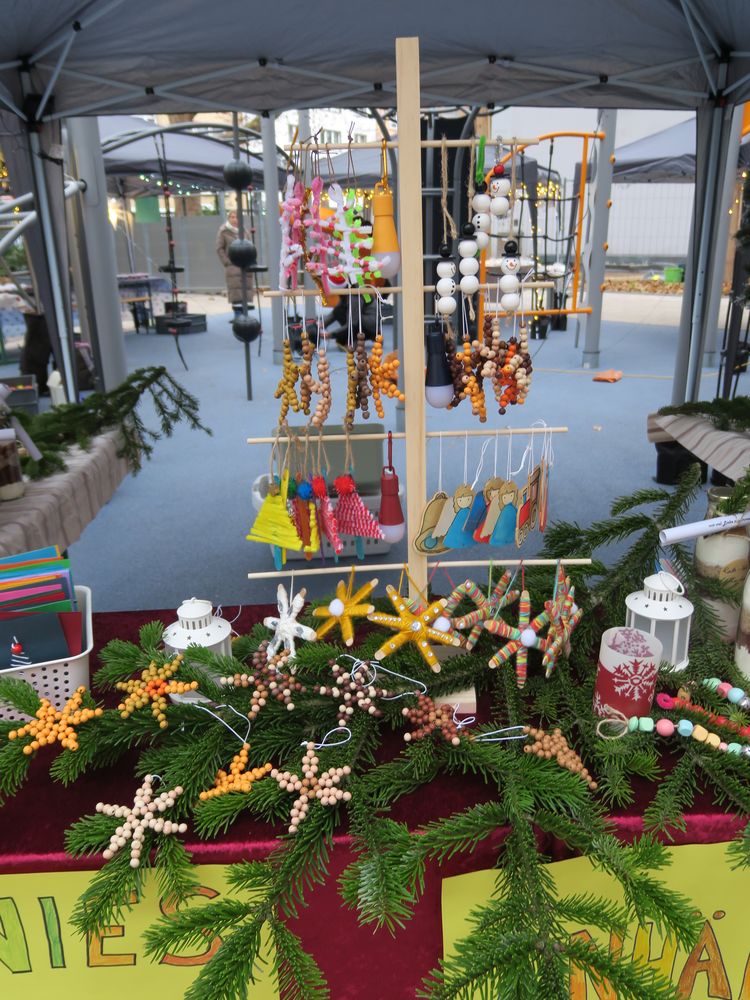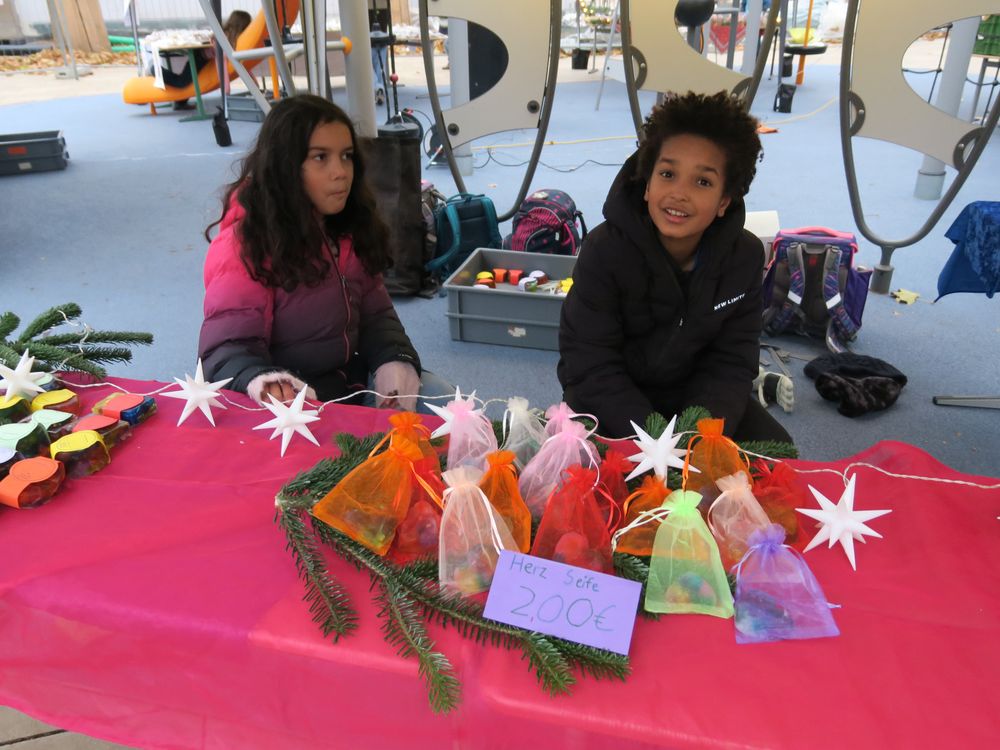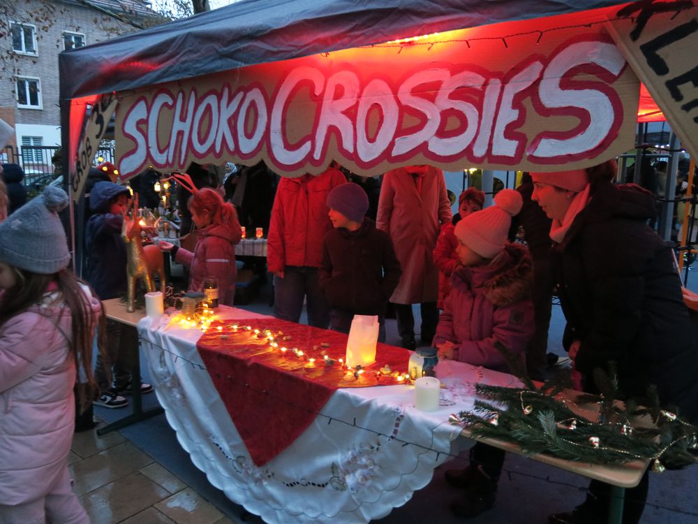Auf dem Schulhof verkauften die Klassen an den Ständen allerlei Selbstgemachtes, in Form von Gebasteltem oder selbst hergestelltes Naschwerk. Ebenso konnte man auch sein Glück beim Drehen des Glücksrads probieren oder sich an einem der Spielestände vergnügen. Die Musical-AG bot auch in ihren Aufführungen einen ersten Einblick in ihr Winter-Musical.
