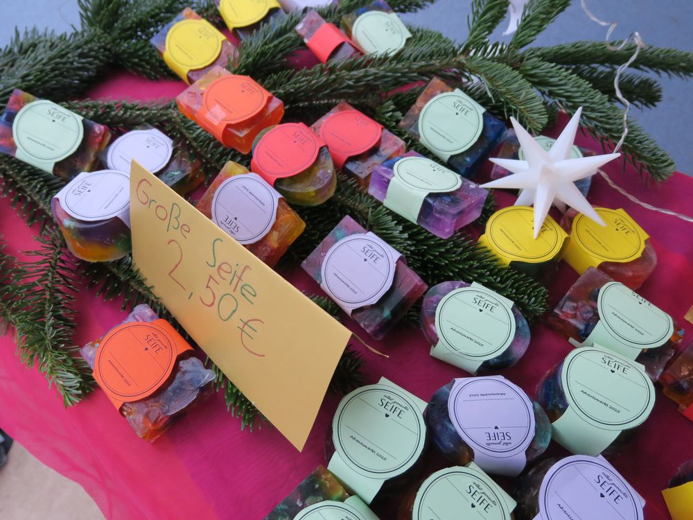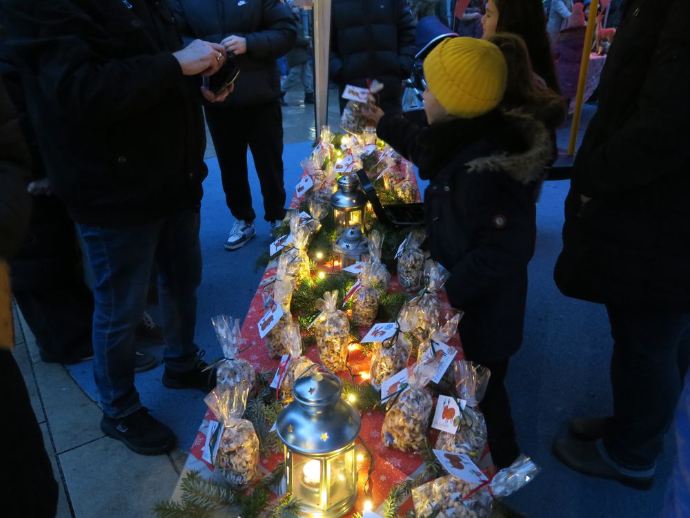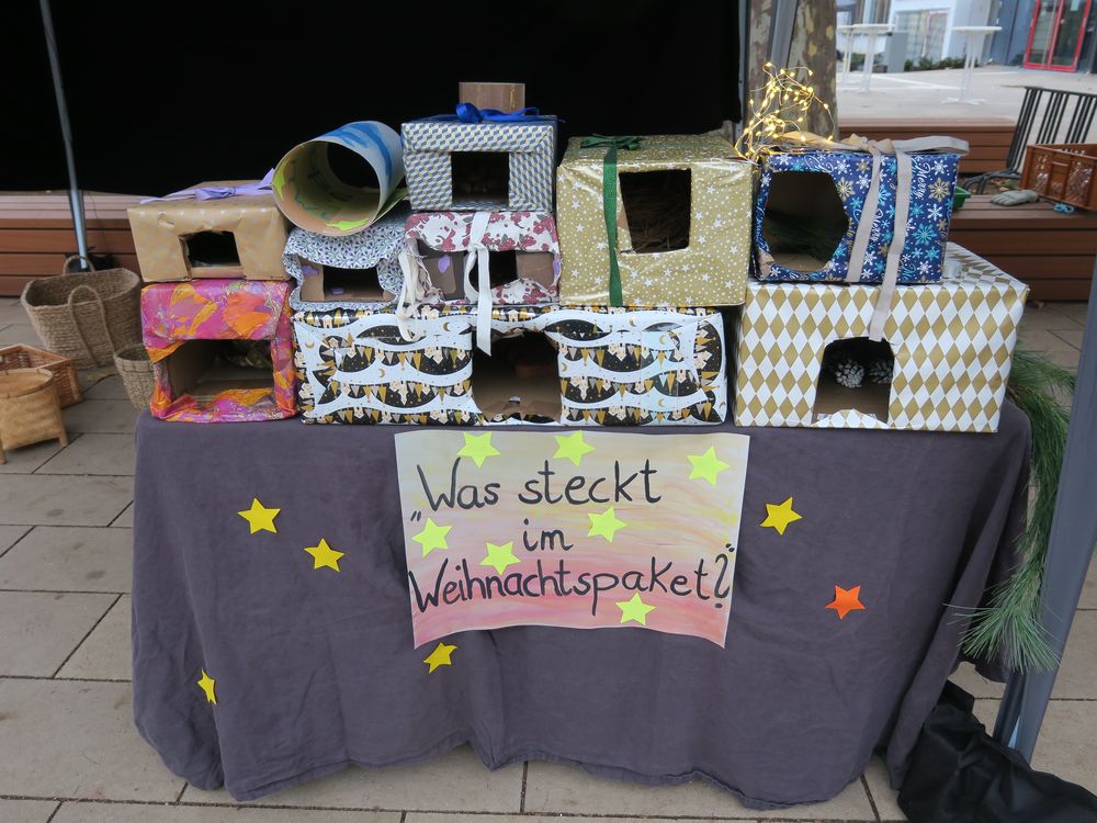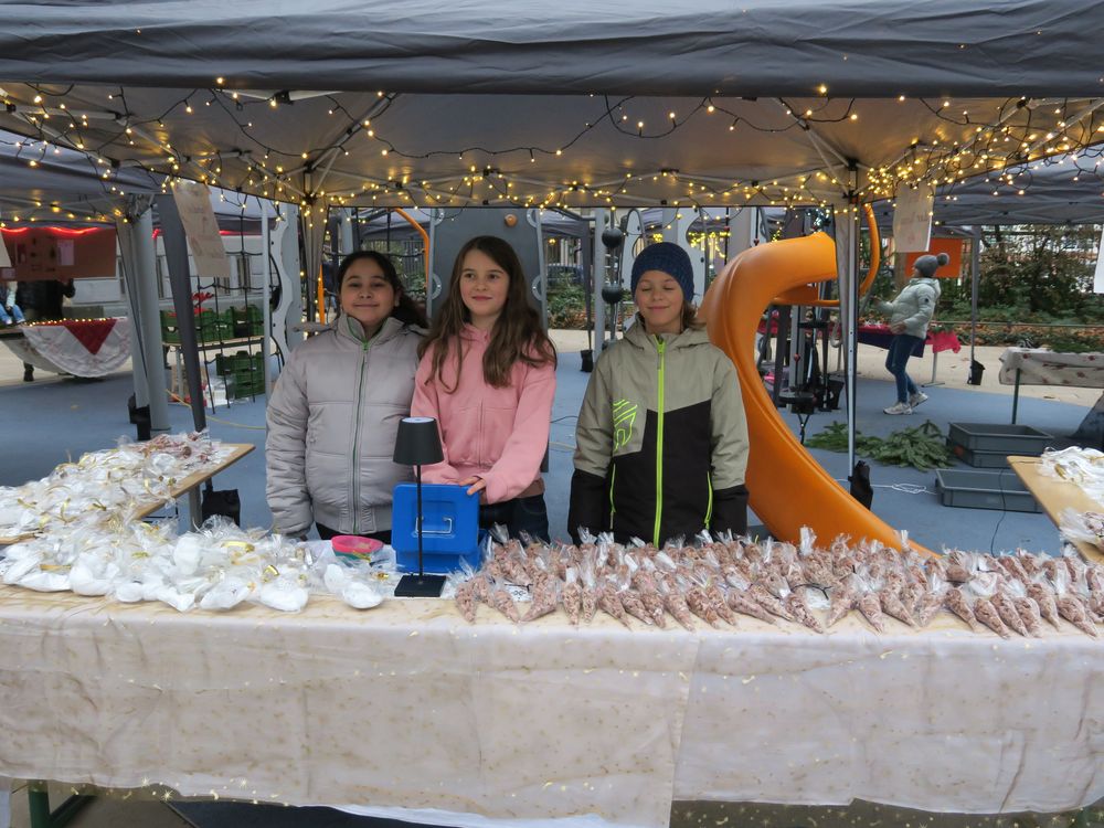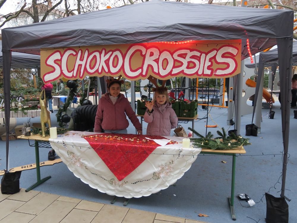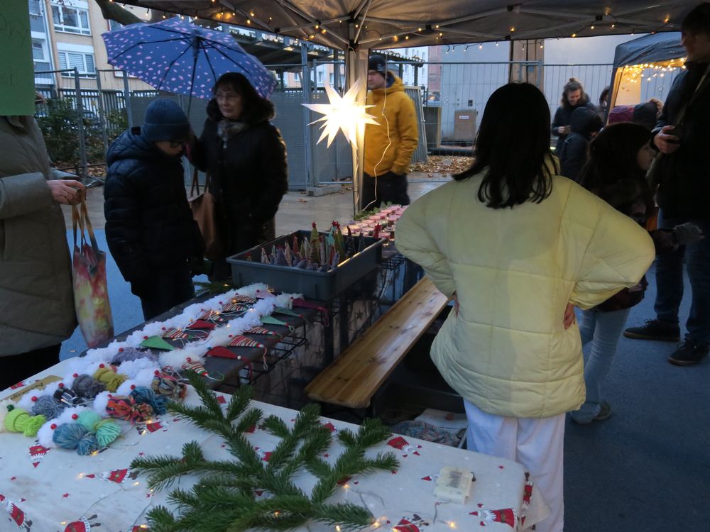 Auf dem Schulhof verkauften die Klassen an den Ständen allerlei Selbstgemachtes, in Form von Gebasteltem oder selbst hergestelltes Naschwerk. Ebenso konnte man auch sein Glück beim Drehen des Glücksrads probieren oder sich an einem der Spielestände vergnügen. Die Musical-AG bot auch in ihren Aufführungen einen ersten Einblick in ihr Winter-Musical.