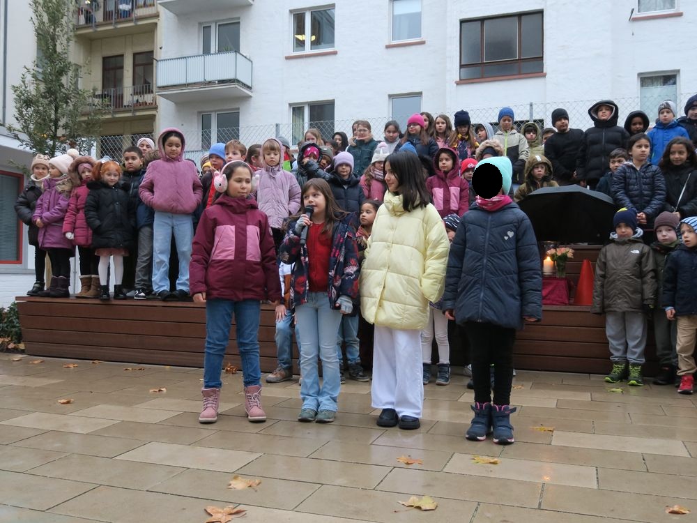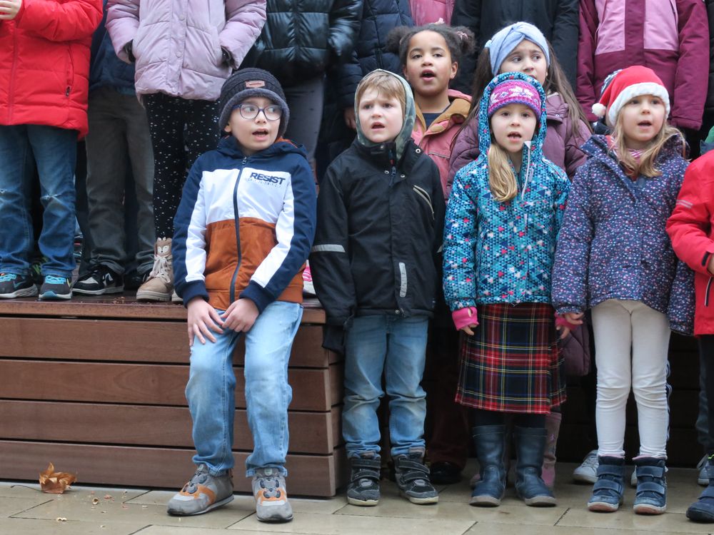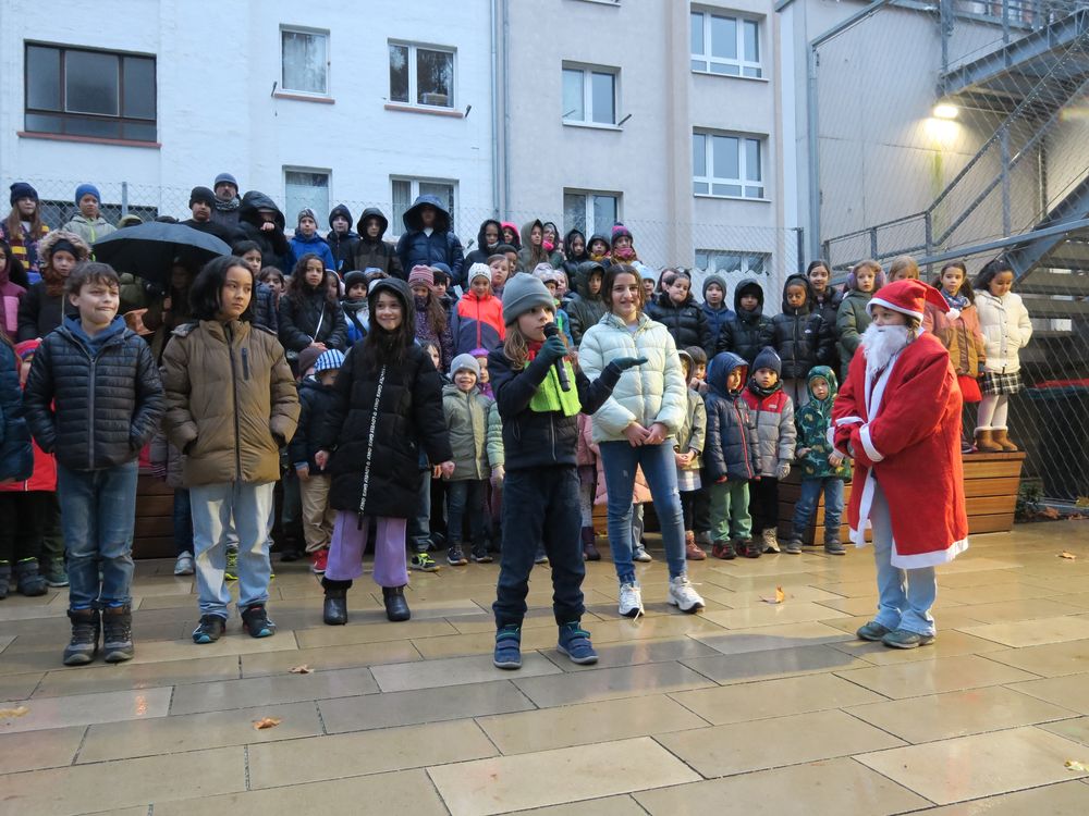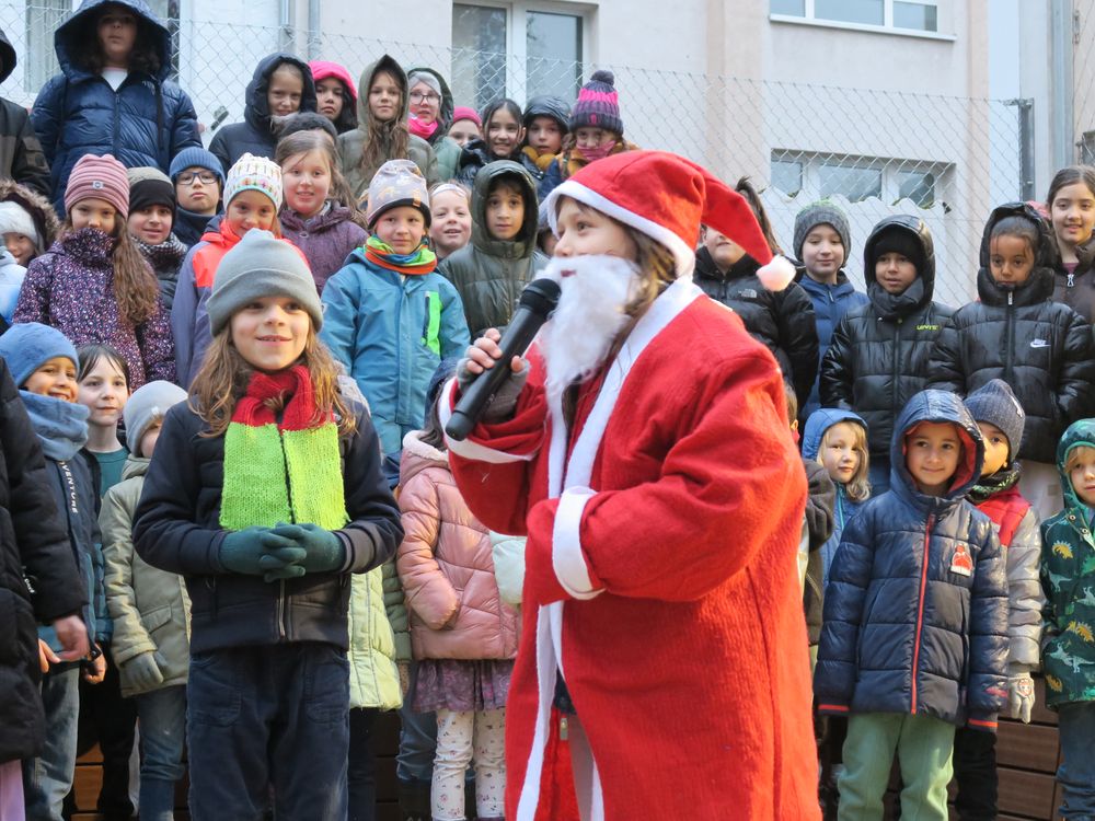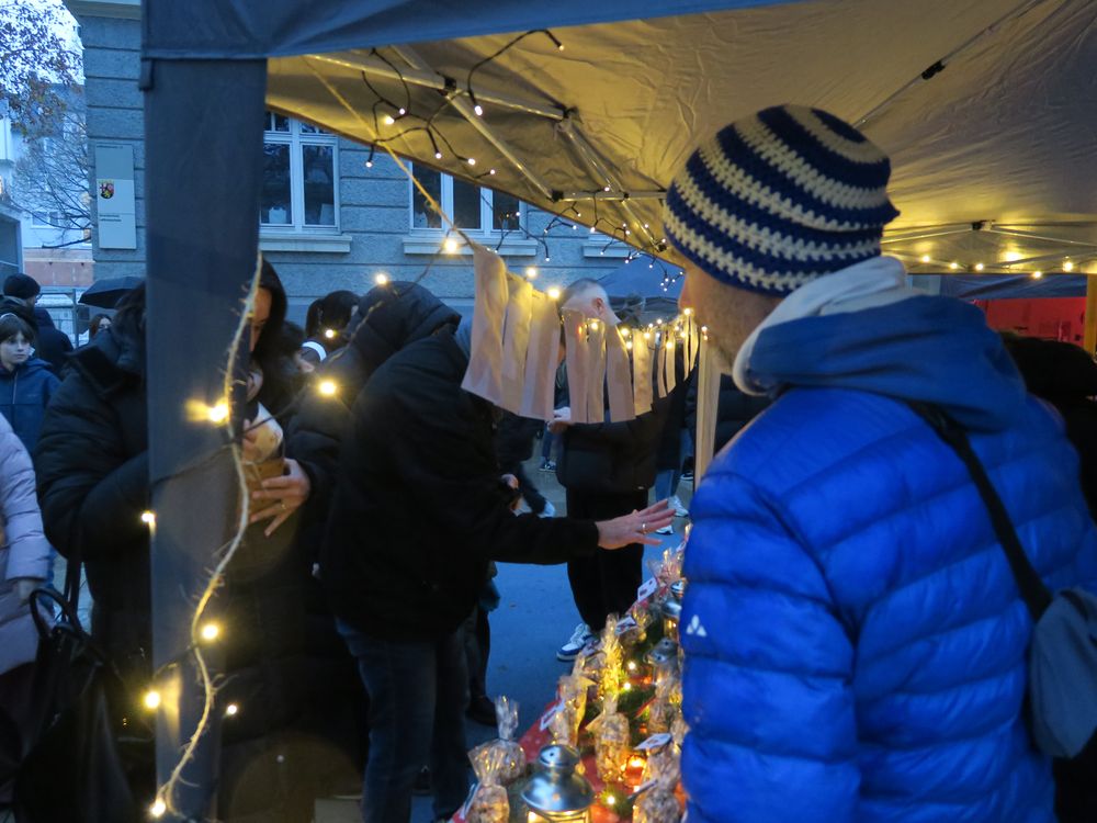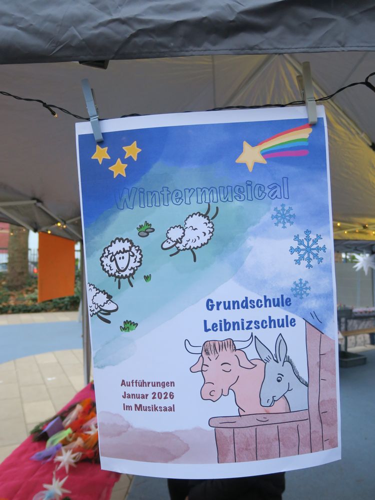 Am Freitag, den 28.11.2025 fand auf dem Schulhof der Leibnizschule der diesjährige Adventsmarkt statt. Alle Kinder sangen gemeinsam als Schulchor und eine vierte Klasse präsentierte dabei weihnachtliche Gedichte.