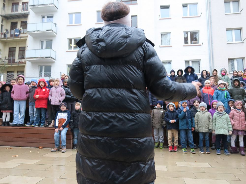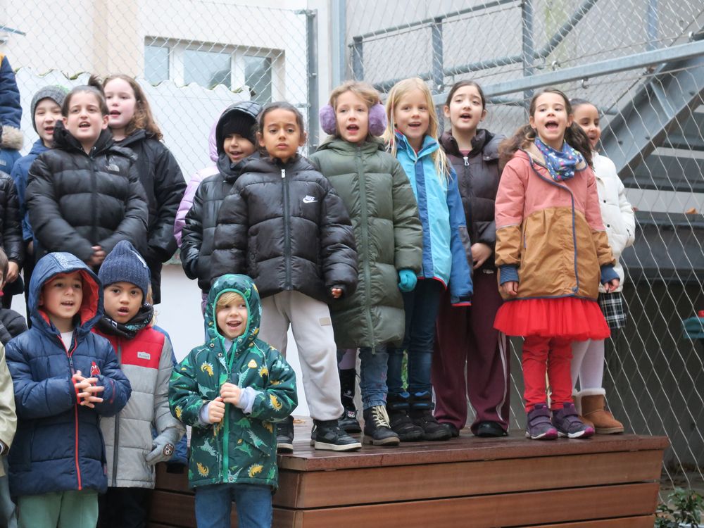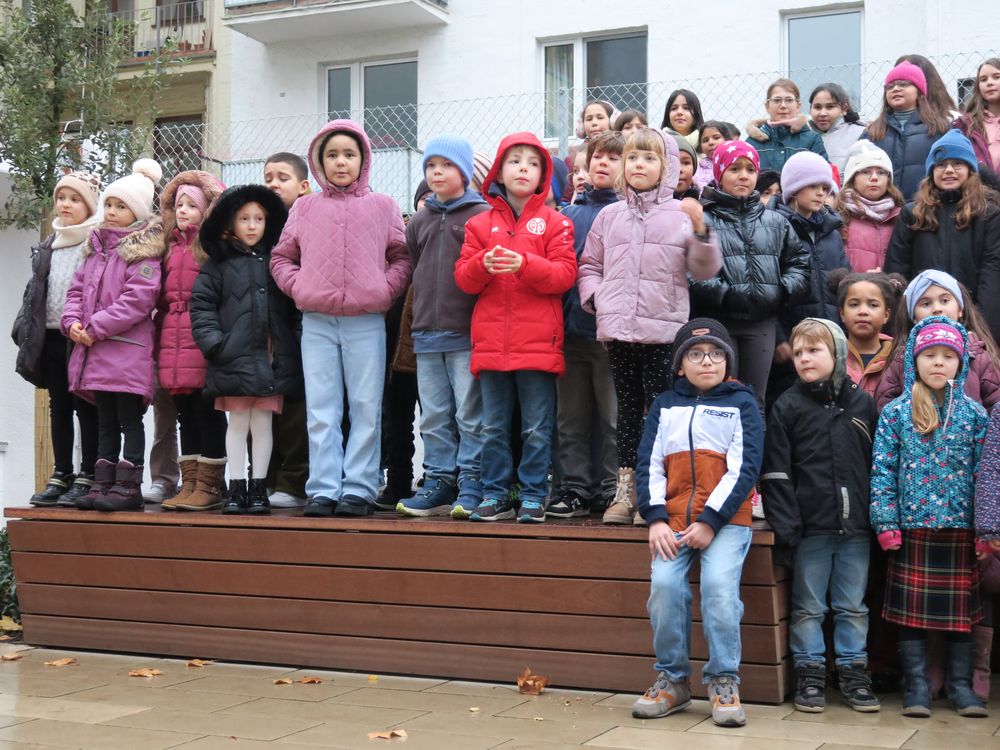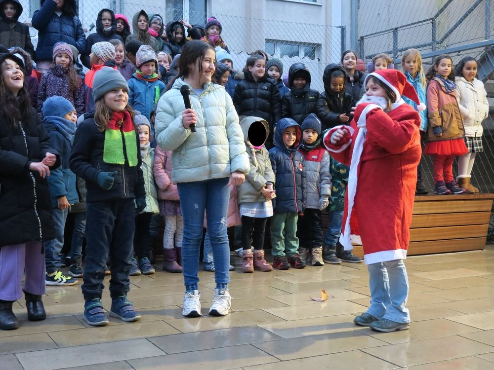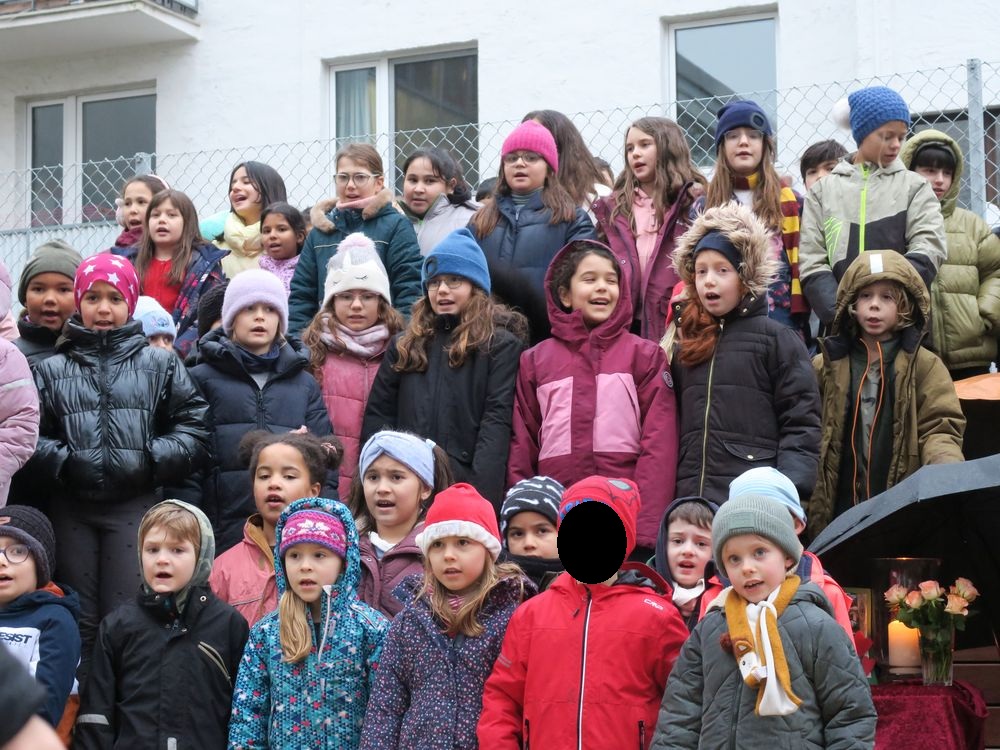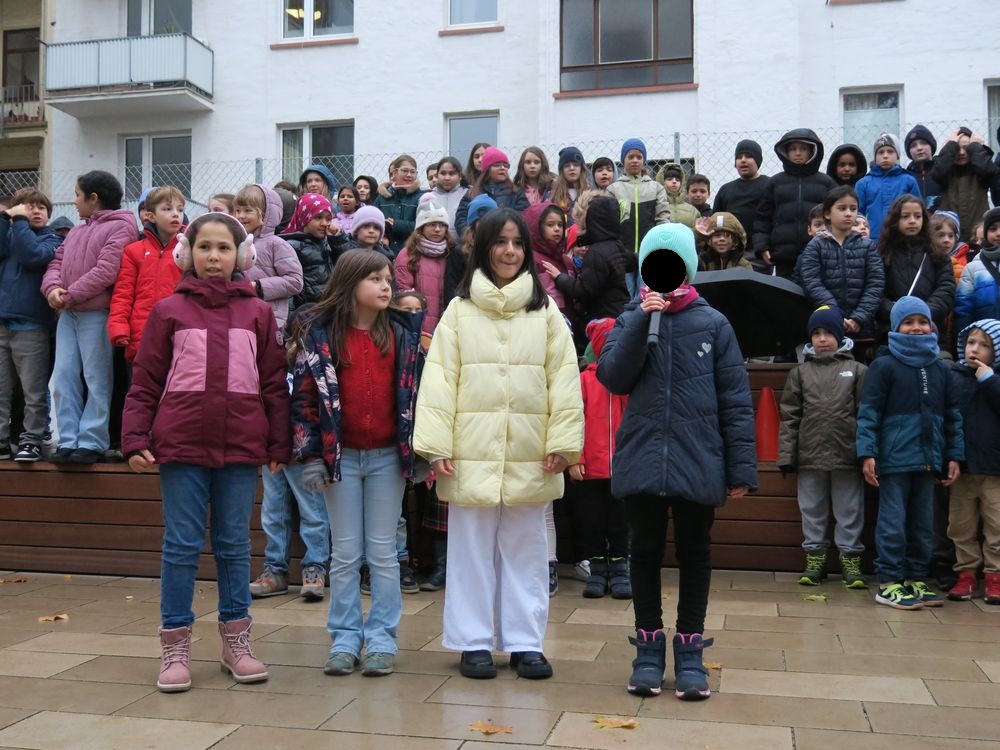 Am Freitag, den 28.11.2025 fand auf dem Schulhof der Leibnizschule der diesjährige Adventsmarkt statt. Alle Kinder sangen gemeinsam als Schulchor und eine vierte Klasse präsentierte dabei weihnachtliche Gedichte.