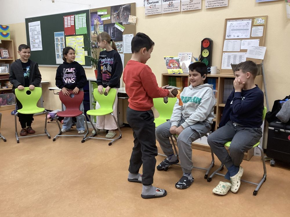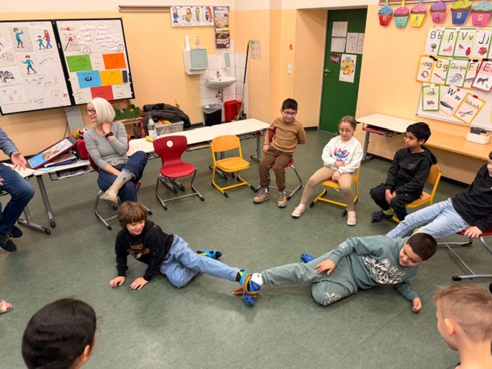 Im Januar 2026 fand wieder das Gewaltpräventionsprojekt "MUT TUT GUT" in allen Klassen statt. Für uns als Schwerpunktschule ist "MUT TUT GUT" ein wahrer Glücksgriff, denn es ist ein zu hundert Prozent inklusives Projekt, das in jeder Hinsicht ganz genau zu unserem Schulprofil passt. Die Lehrerinnen und Lehrer begleiten durchgehend die Trainingseinheiten und nehmen viele Elemente daraus in ihren Unterrichts- und Schulalltag auf, so dass das Ganze eine große Wirksamkeit und Nachhaltigkeit erfährt.