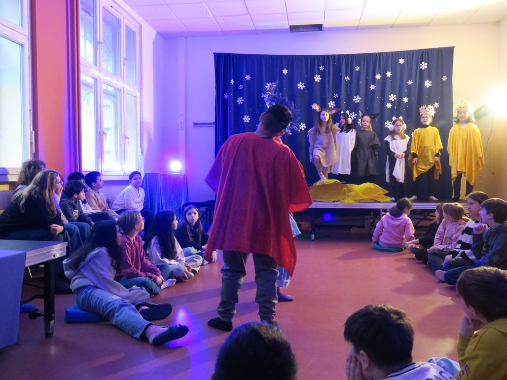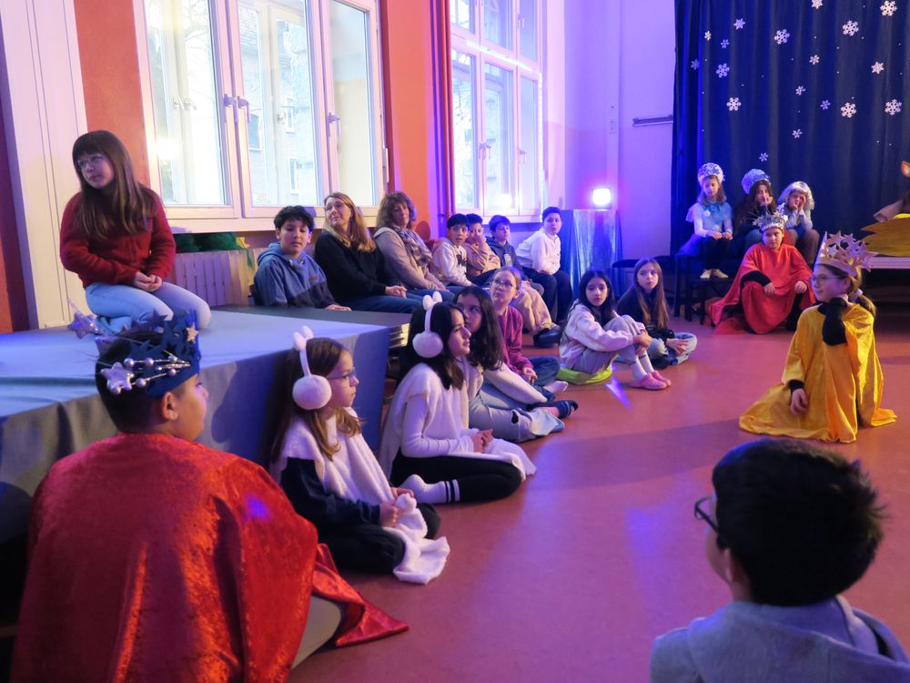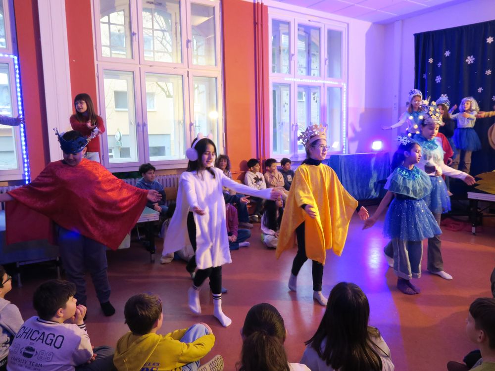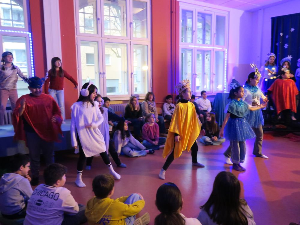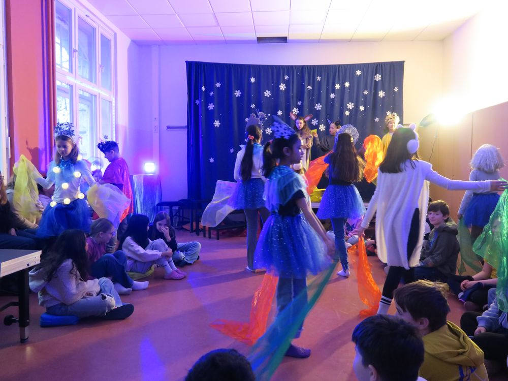 Die Kinder der Musical-AG aus den 4. Klassen führten allen anderen Schülerinnen und Schülern ihr Winter-Musical vor.