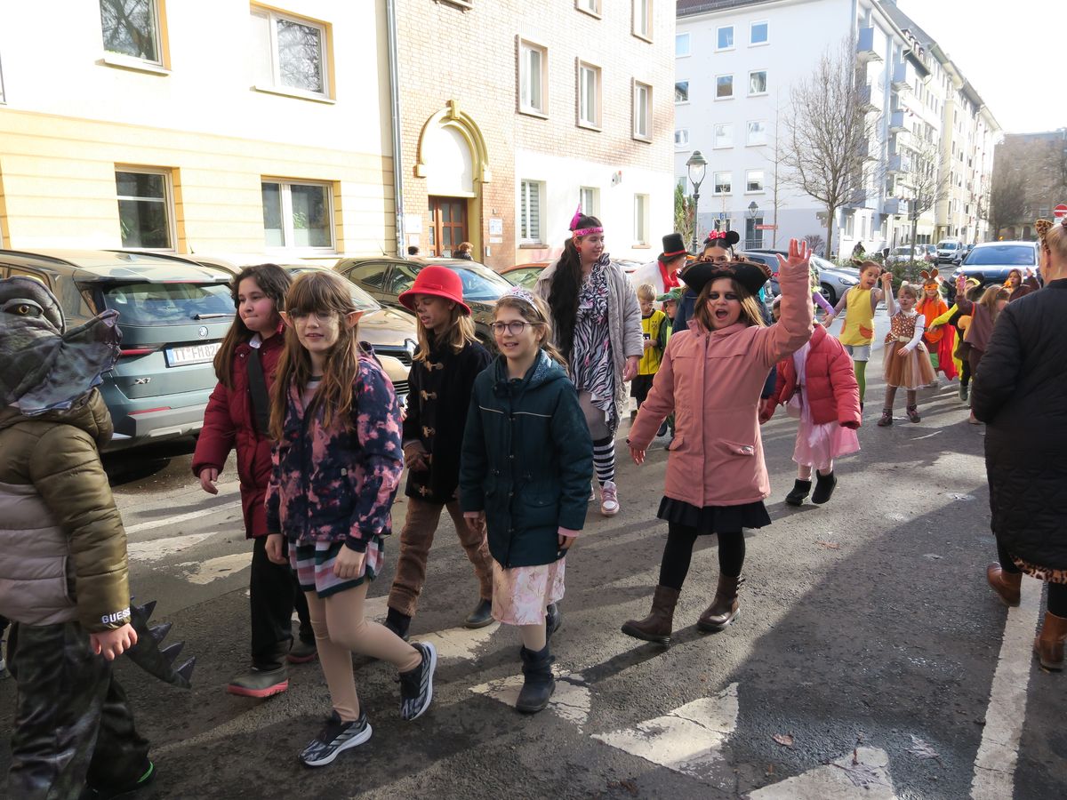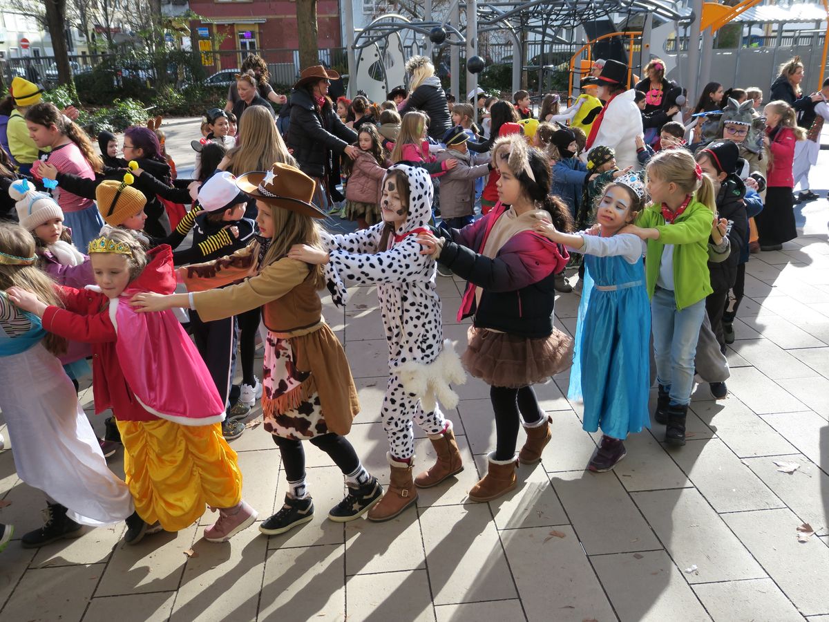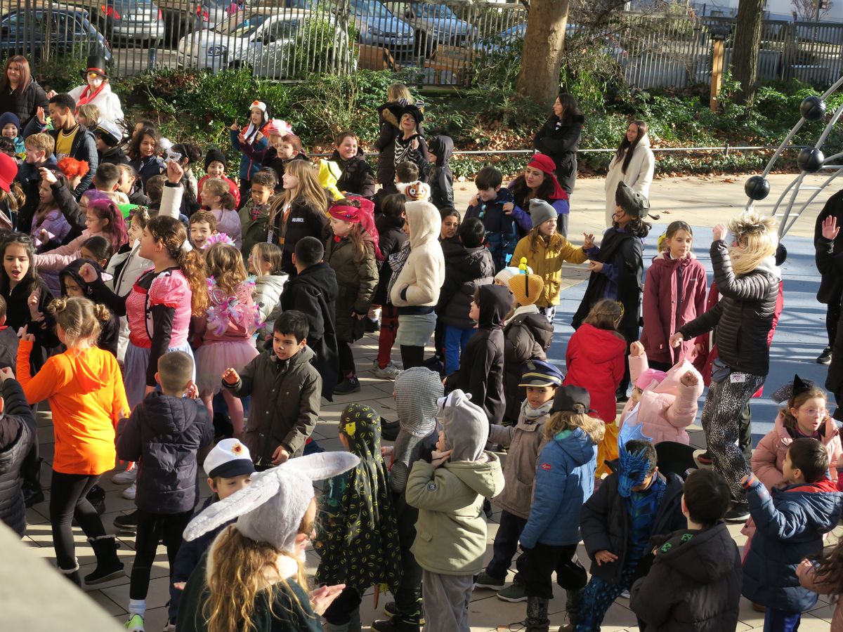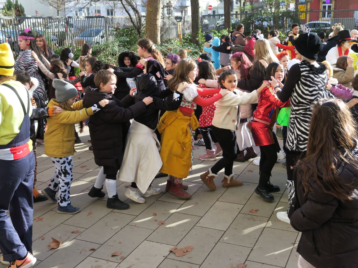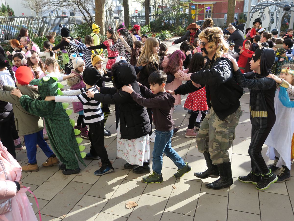 Außerdem haben wir noch einen kleinen Umzug rund um die Schule gemacht und anschließend gab es Disco für alle auf dem Schulhof! HELAU!