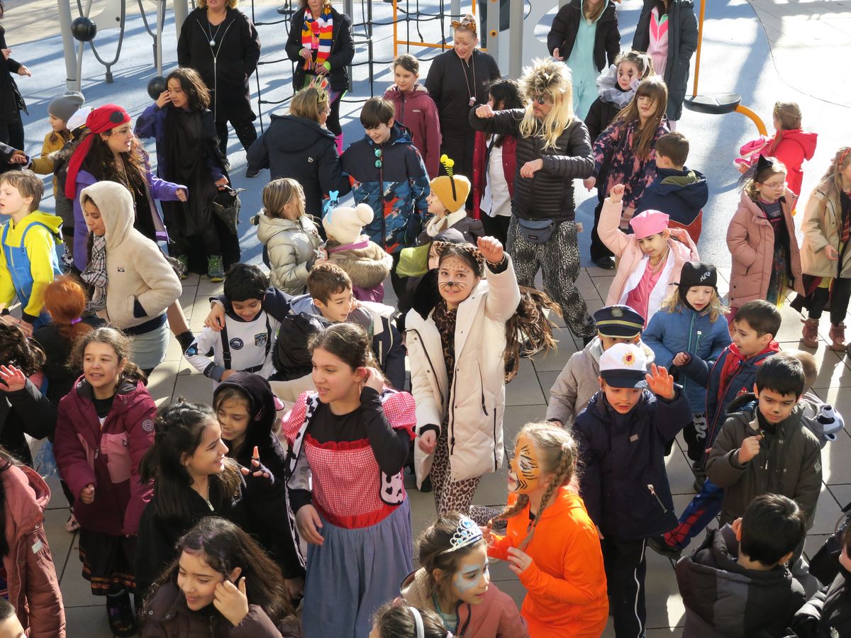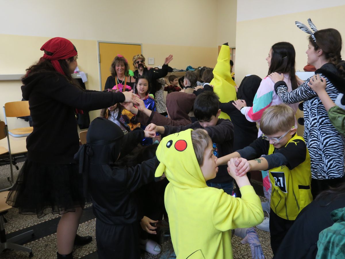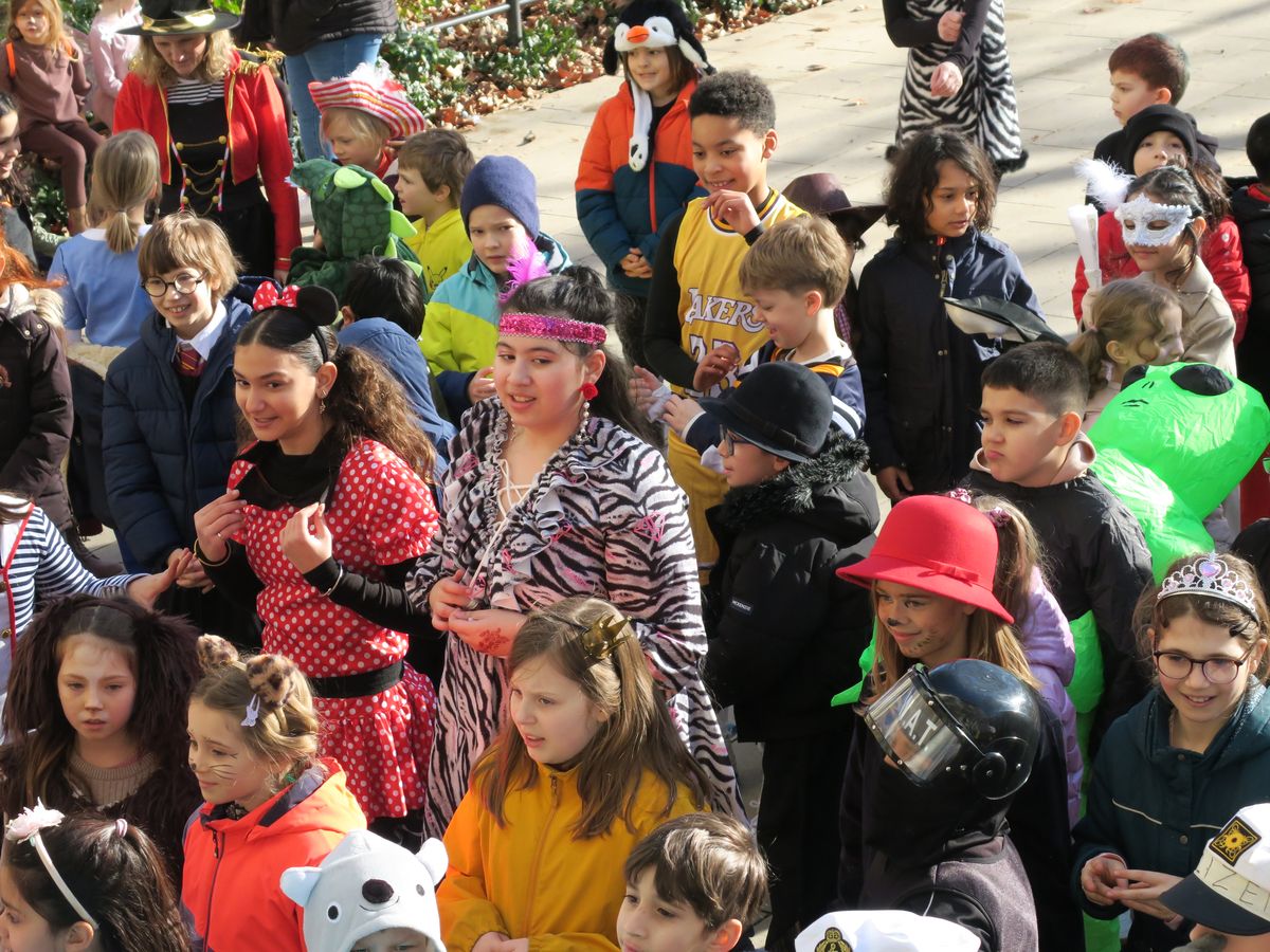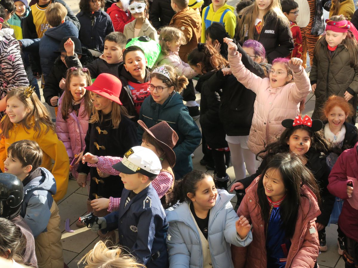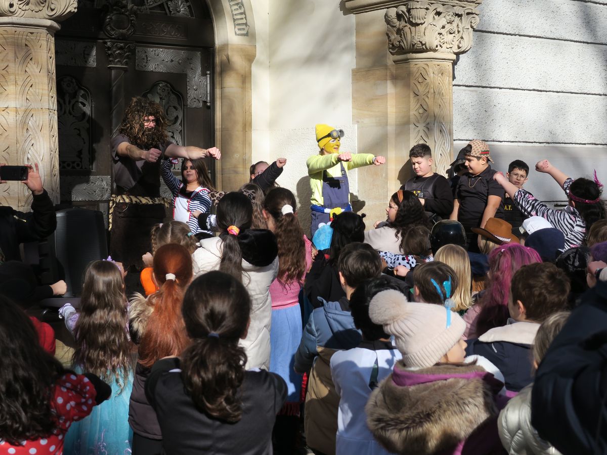 Außerdem haben wir noch einen kleinen Umzug rund um die Schule gemacht und anschließend gab es Disco für alle auf dem Schulhof! HELAU!