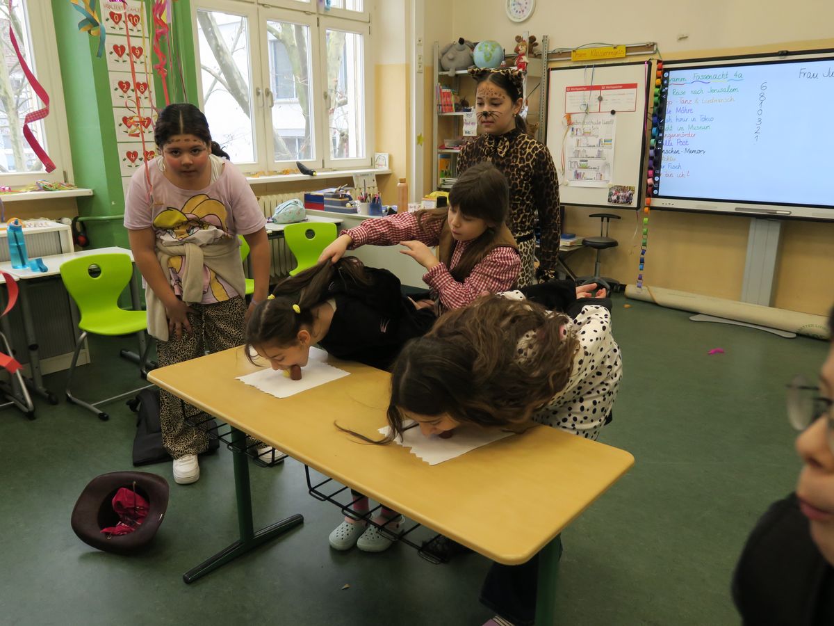 Heute wird auf den Tischen getanzt, denn es ist Fastnacht in der Leibnizschule!